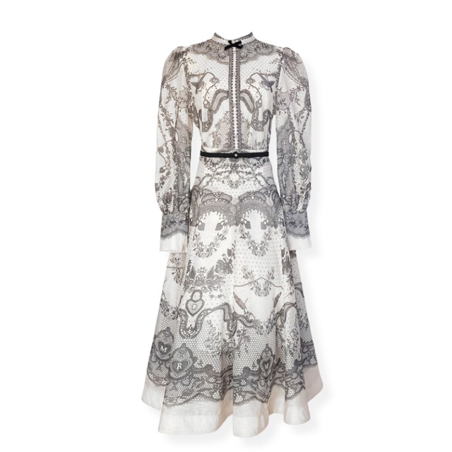 送料無料 ◆ D2503 ホワイトベルト付き パール 刺繍襟 レース パールボタン 前開き ロング ワンピース 《 オフホワイト 》 長袖 ホワイト アイボリー ベージュ 裏地あり インポートワンピース パーティードレス メール便 フリル パーティー 結婚式 お呼ばれ シアーワンピース 長袖 ワンピース 同窓会 謝恩会 ドレス 膝丈 マキシ ロング 発表会 卒業パーティー 刺繍ドレス クリスマス レースワンピース 柄ワンピース