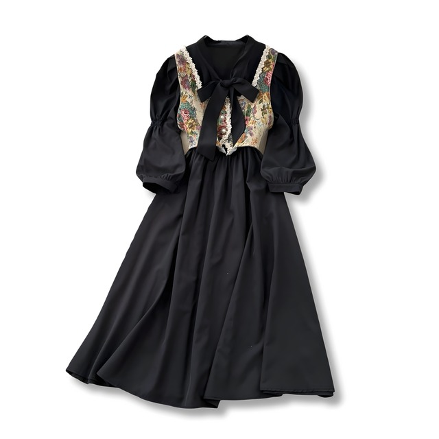 送料無料 ◆ D2630 スカーフリボン付き ゴールドバードボタン ボタニカル バルーンスリーブ ロング ワンピース《 ピンク 》 花柄 フラワー バード 鳥柄 クラシカルボタン ボタン 袖あり クラシック 柄物ワンピース 柄ワンピース 柄物 レトロ ヴィンテージ風 ワンピース クラシックワンピース ドレスワンピース 袖あり ミモレ 膝下 膝下丈 ワンピース お呼ばれ おしゃれ 衣装 おでかけ エレガント リボンセット 上品 カジュアル