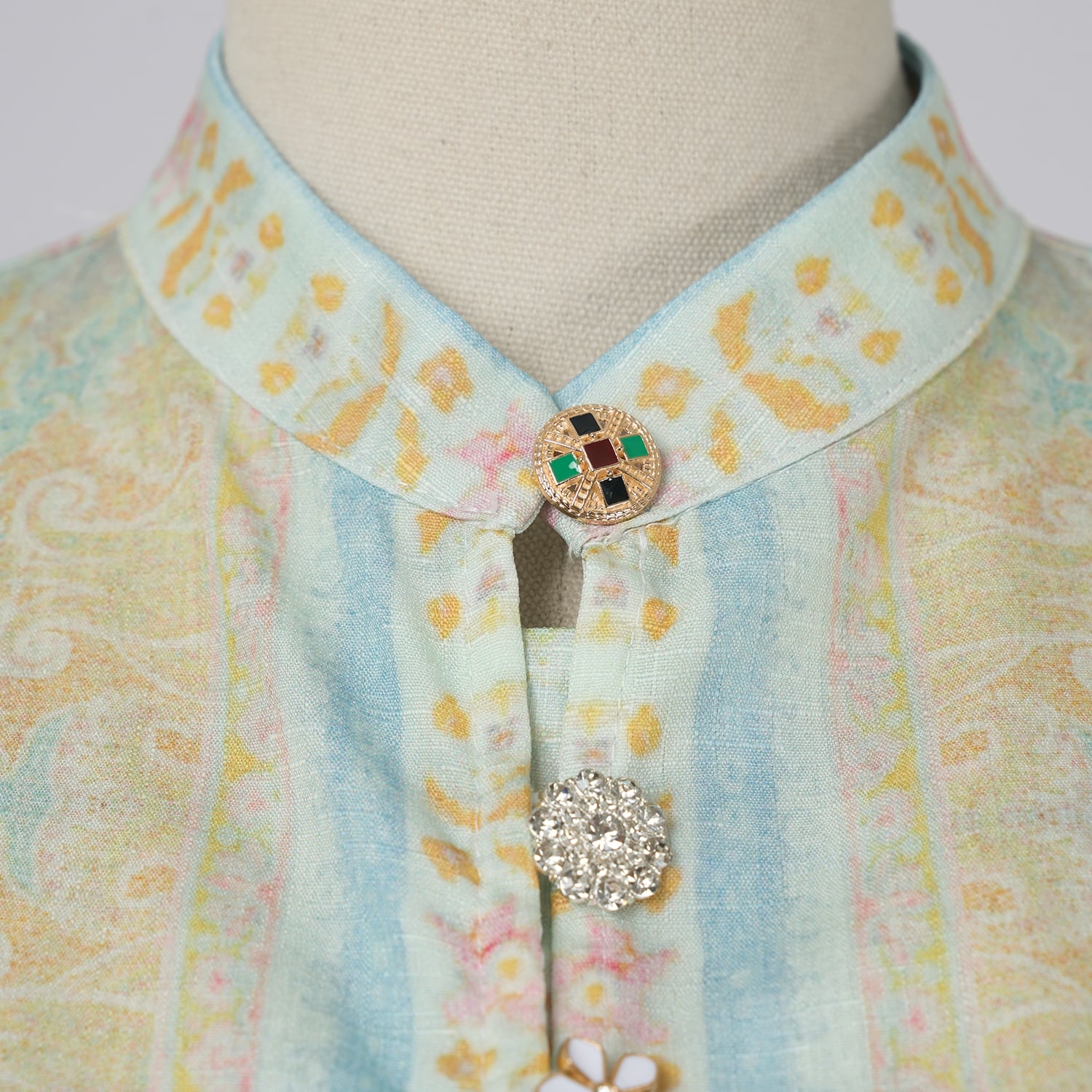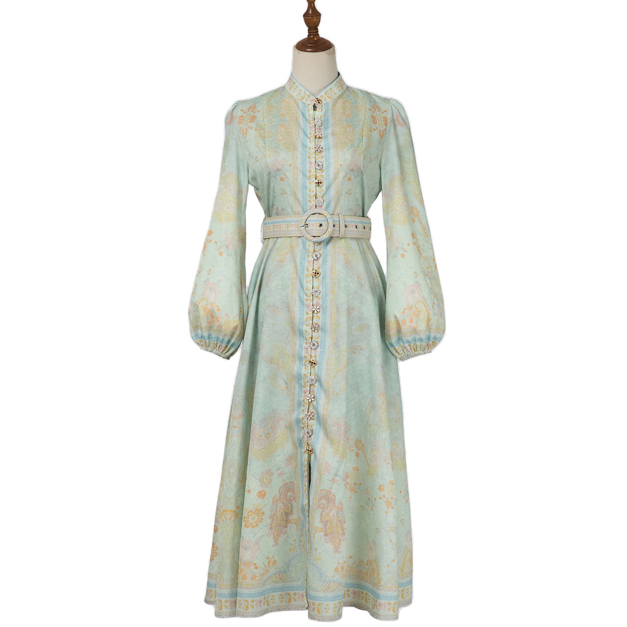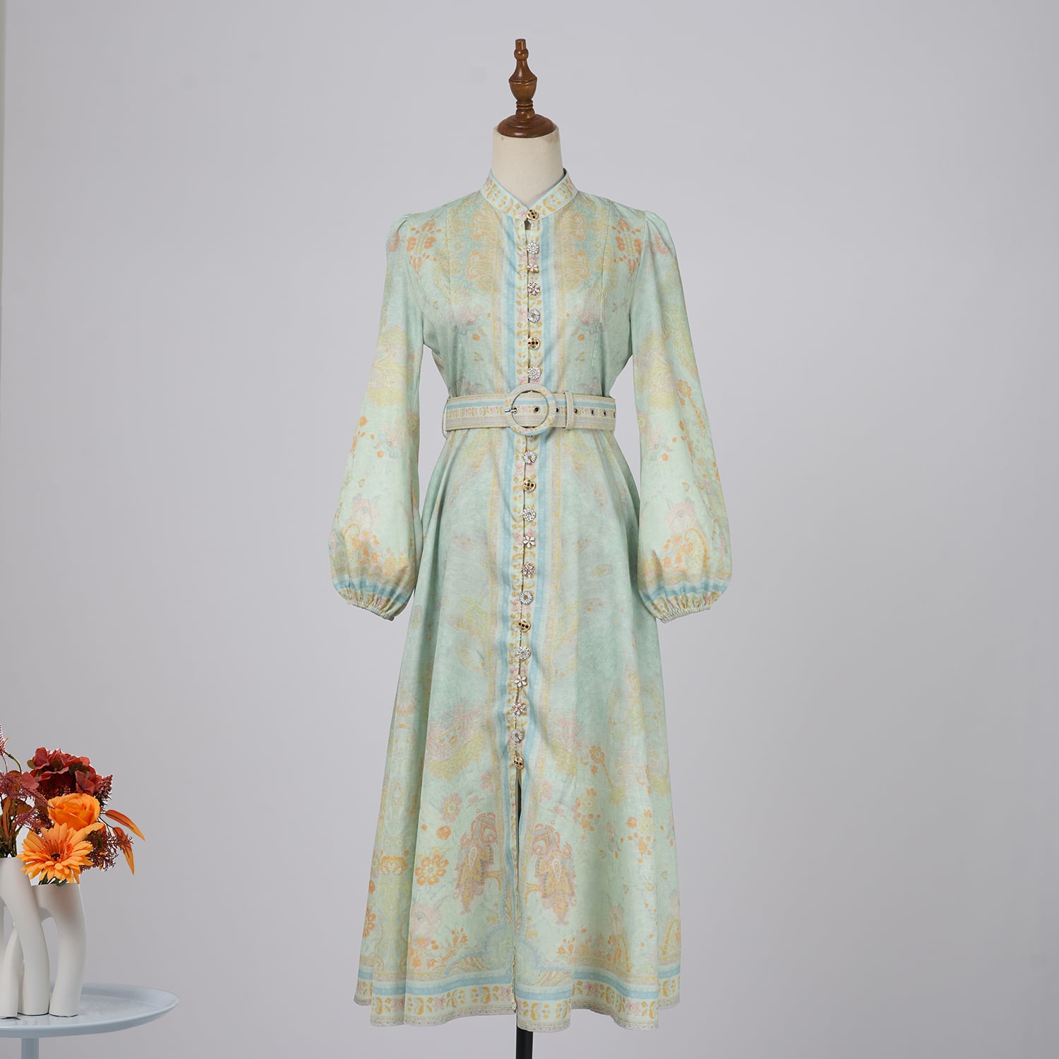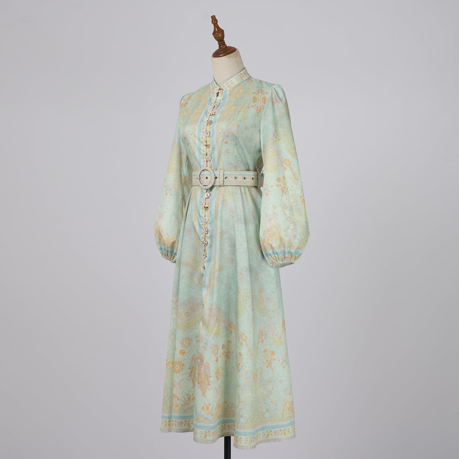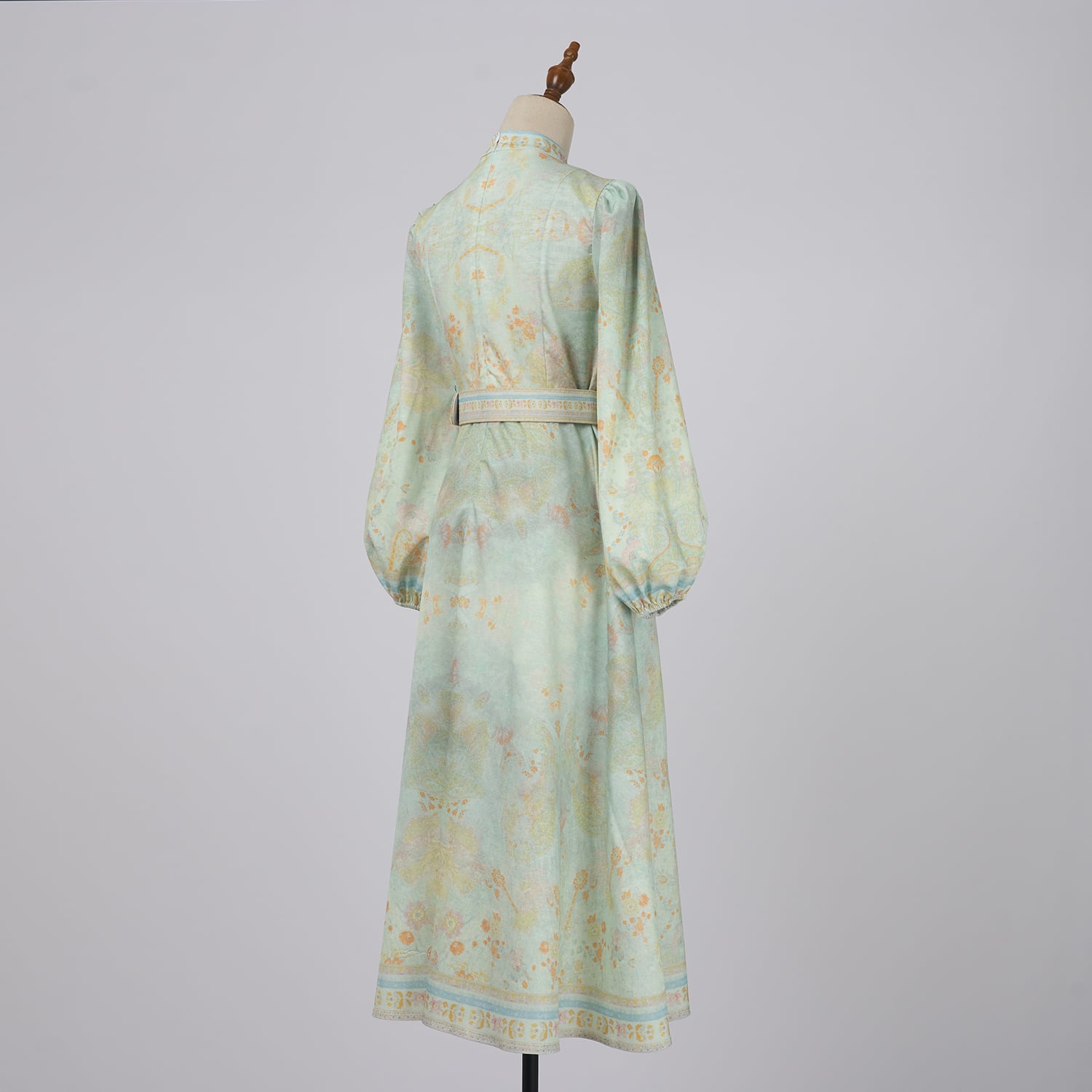 送料無料 ◆ D2248 ベルト付き マルチボタン 花柄 前開き バルーンスリーブ ロング ワンピース《 ライトグリーン×ライトブルー 》カラフル ボタン色々 色々ボタン 花柄 クラシカルボタン ボタン 袖あり クラシック 柄物ワンピース 柄ワンピース 柄物 レトロ ヴィンテージ風 ワンピース クラシックワンピース ドレスワンピース 袖あり ミモレ 膝下 膝下丈 ワンピース お呼ばれ おしゃれ 衣装 おでかけ エレガント ベルトセット 上品 カジュアル メール便