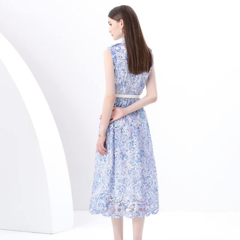 送料無料 ◆ D2254 ホワイトベルト付き 前開き 襟付き クロッシェレース アラベスク ノースリーブ ロング ドレス ワンピース《 ホワイト×ブルー 》白 アラベスク ノースリーブ マキシ インポートワンピース 結婚式 パーティードレス メール便 パーティーワンピ 袖付き お呼ばれワンピース ドレス 衣装 膝下 裏地付き インポートワンピース お呼ばれ 上品 衣装 エレガント 同窓会 謝恩会 ノースリーブドレス
