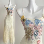 送料無料 ◆ D2304 パステル 立体 フラワー 刺繍 パール スパンコール チョウチョ レース ロング キャミ ワンピース《 オフホワイト×パステル 》 刺繍ドレス 花柄 クラシカル 立体刺繍 キャミワンピース パーティードレス お呼ばれ 結婚式 メール便 パーティー パーティーワンピ 膝下 お呼ばれワンピース 袖あり おしゃれ ロングワンピース 卒業パーティー インポートワンピース レースキャミワンピ キャミワンピ ホワイトワンピース ホワイト 白ドレス パステルカラー
