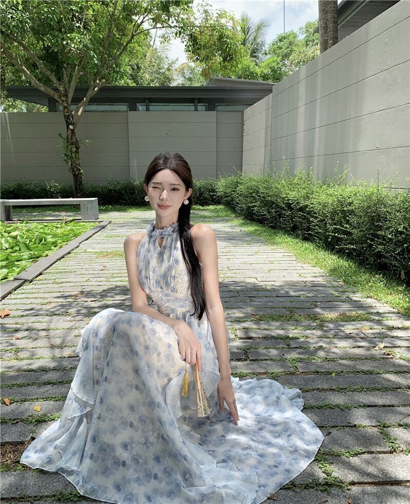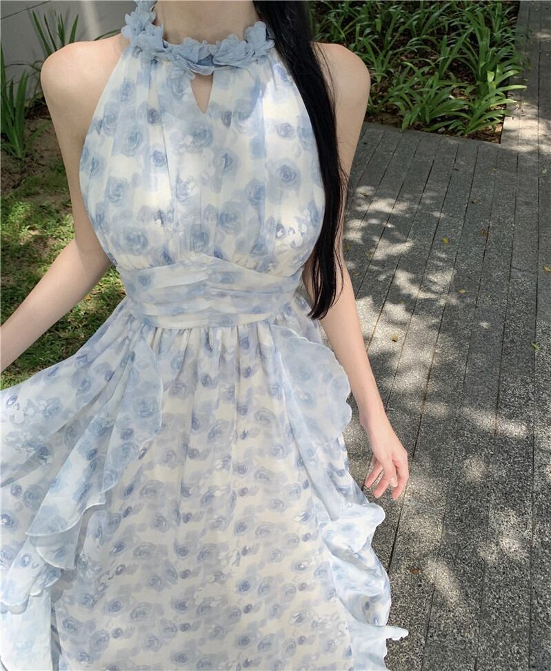 送料無料 ◆ D2351 フラワーモチーフネック ラッフルフリル ローズ ノースリーブ ドレス ワンピース《 オフホワイト×ブルーグレー 》水色 グレー フラワーモチーフ アメリカンスリーブ 無地 ノースリーブ レース スパンコール お出かけ 膝下 お呼ばれ 結婚式 パーティードレス 同窓会 発表会 謝恩会 オケージョン オケージョンドレス インポート チュールドレス 装飾 ふわふわ 紫 インポートドレス