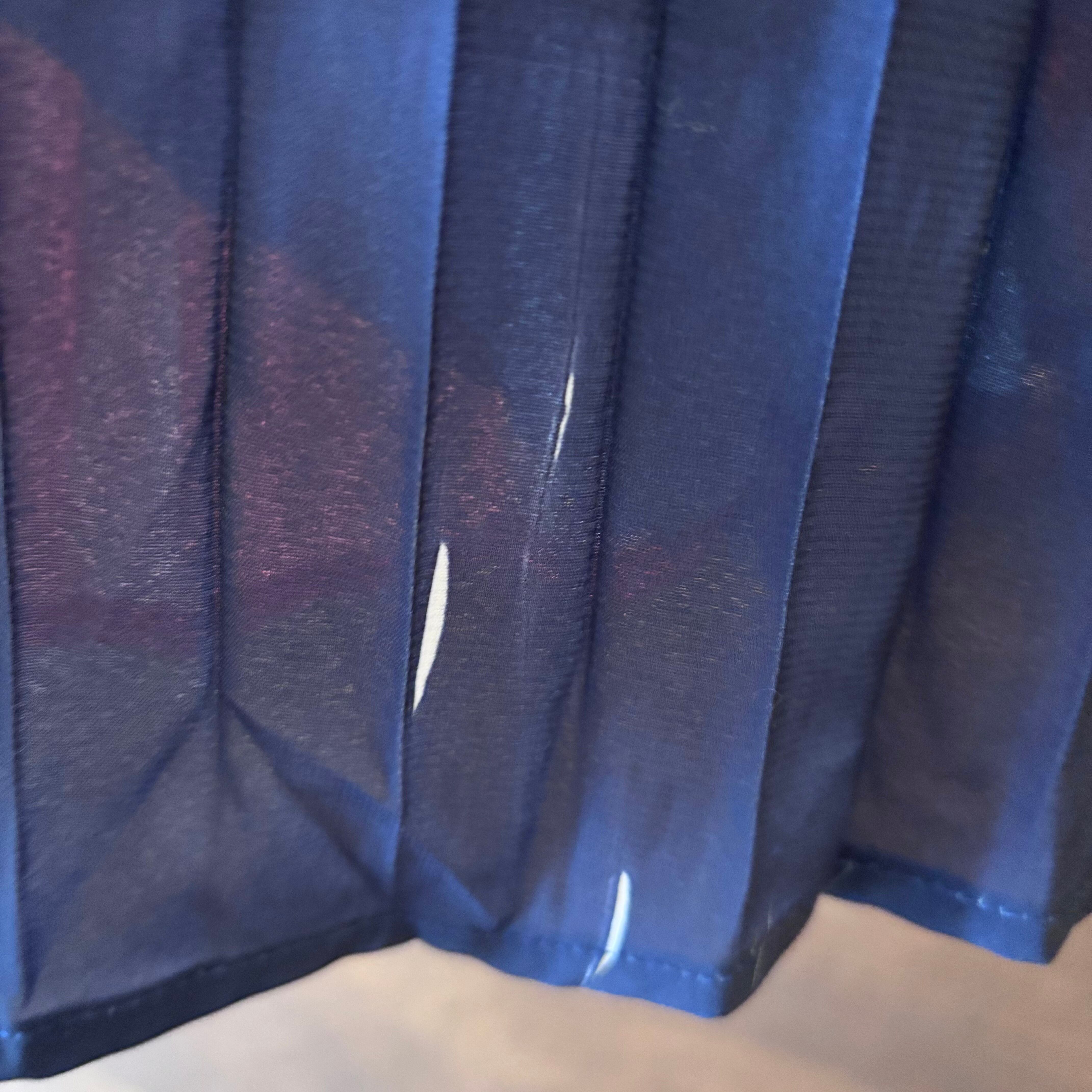 トップはサマーニット、ウエストから下はシフォンプリーツの異素材ミックス