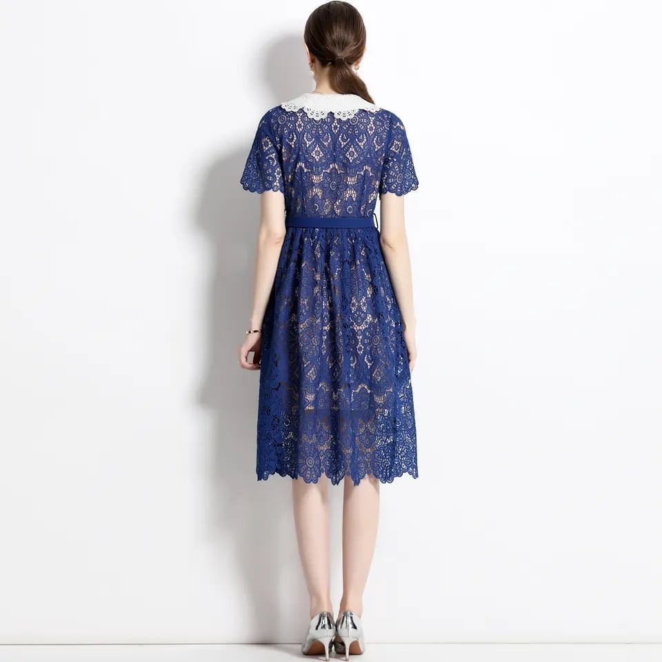 《訳ありアウトレット》送料無料 ◆ D1548 ベルト付き 白襟 フラワー レース ゴールドボタン ミディ ワンピース《 ブルー 》青 白 音符柄 無地 襟付きワンピース 襟つき バイカラー ブルー 半袖 膝丈 フラワー クラシカルボタン インポート パーティードレス カジュアル メール便 パーティーワンピ お呼ばれワンピース お食事 おしゃれ 上品 柄物ワンピース インポートワンピース 柄ワンピース 発表会 ウェディング おでかけ 衣装 セミフォーマル 訳ありアウトレット わけあり 訳あり