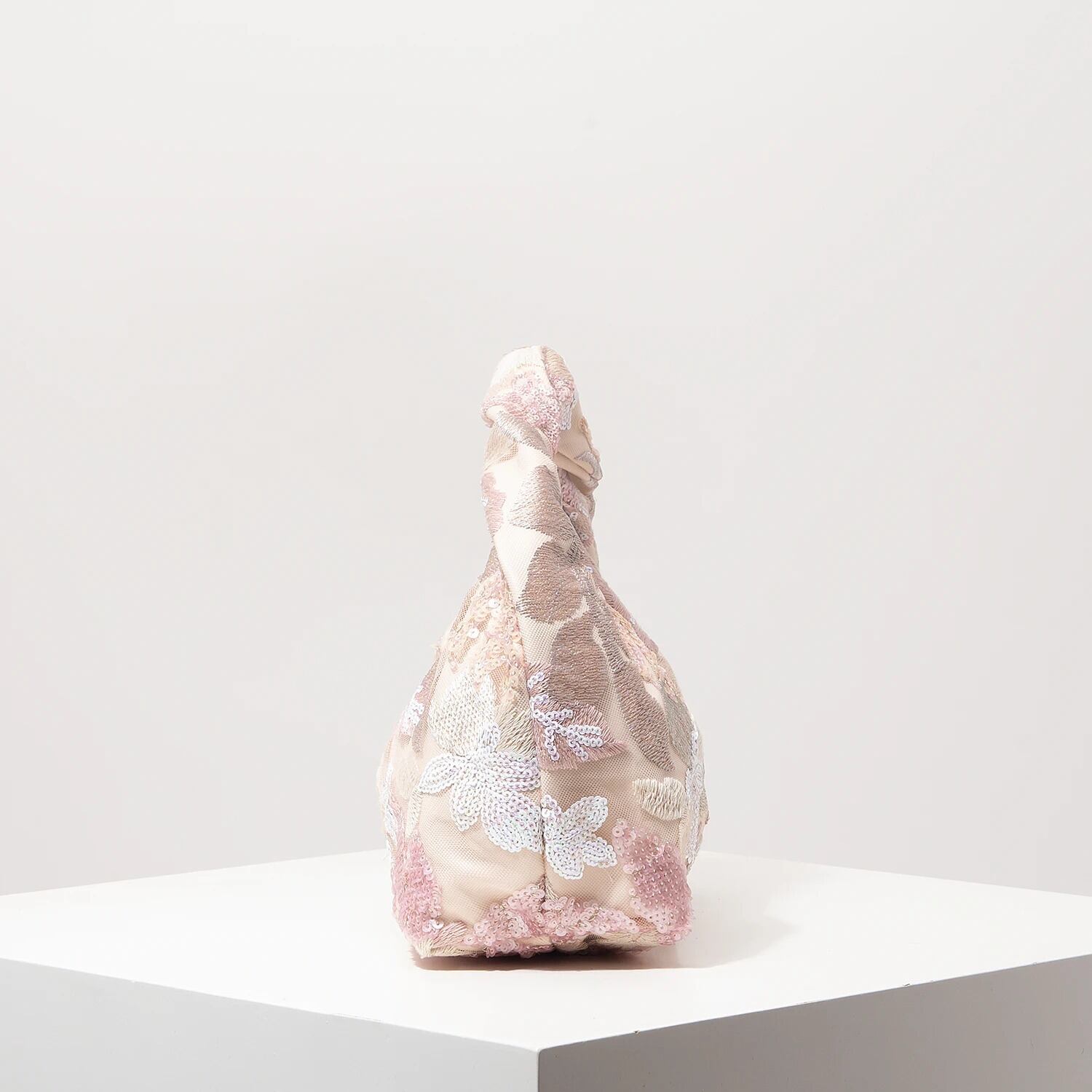 送料無料 ◆ D2363 ミルキーカラー フラワー スパンコール 刺繍 ハンドバッグ《 ライトベージュ×ピンク 》鞄 バッグ 刺繍鞄 刺繍 スパンコール刺繍 お出かけバッグ 華やか鞄 プレゼント ギフト 浴衣 着物鞄 エレガント 上品 インポートバッグ インポート カラフルバッグ バースデー ギフト プレゼント 誕生日 プチギフト