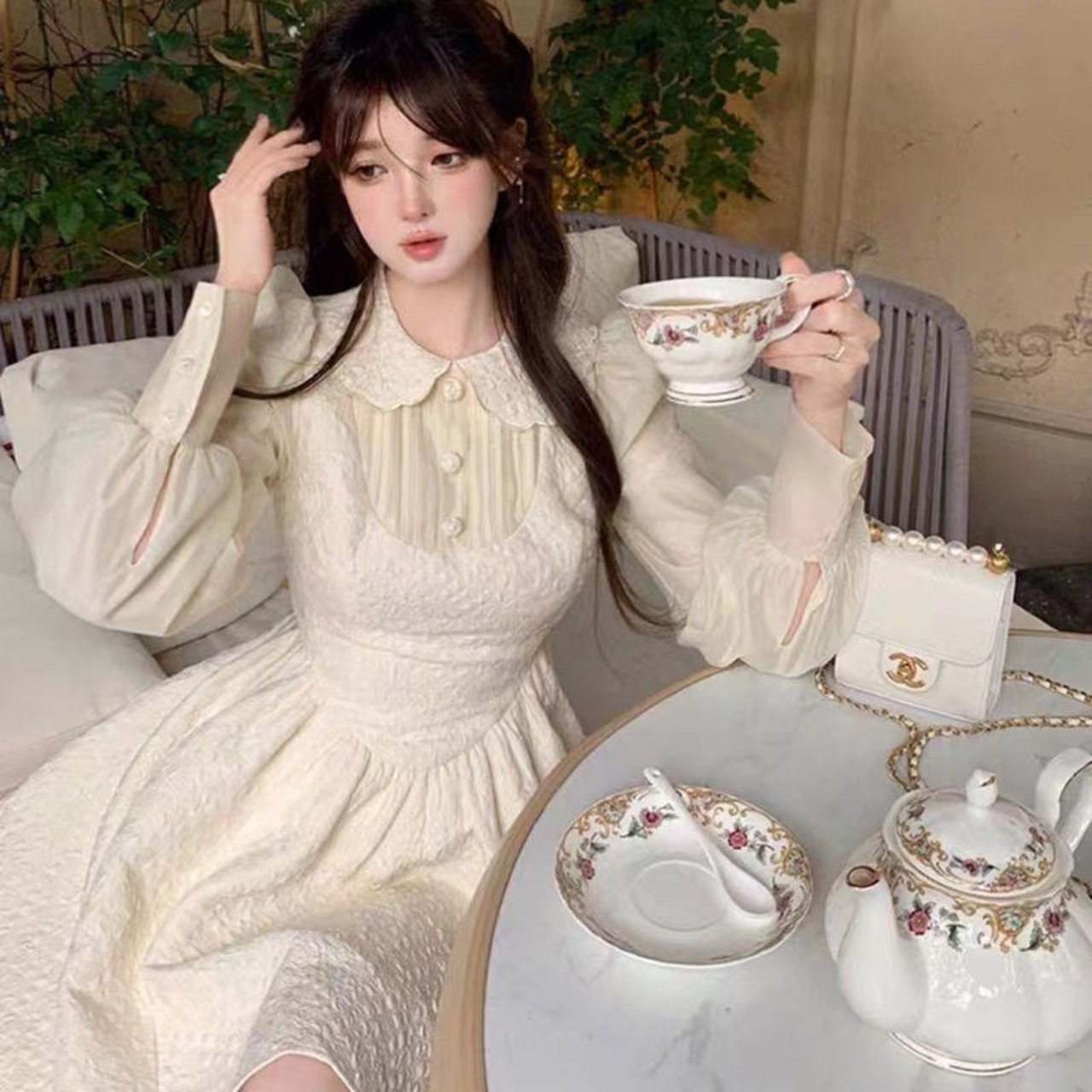 《訳ありアウトレット》送料無料 ◆ D1846 スカラップ 襟付き バルーンスリーブ ロングカフス ミニ ワンピース《オフホワイト》 ホワイトドレス 白ドレス 長袖 ドレス ミニ ミニドレス 異素材ミックス 白レース襟 インポート パーティードレス お出かけ メール便 パーティーコーデ お呼ばれ 袖あり インポートワンピース かわいい 韓国 衣装 発表会 結婚式 謝恩会 同窓会 卒業パーティー 訳ありアウトレット わけあり 訳あり