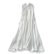 送料無料 ◆ D2376 バックリボン スタンドネック 立体 刺繍 フラワー モチーフ パール ビーズ ノースリーブ ドレス ワンピース《ホワイト》 白ワンピース ホワイト 白 白ワンピ クラシカル インポートワンピース ノースリーブ 膝丈 インポートワンピース メール便 裏地あり 透けない 上品 エレガント マキシ ロング パーティー 衣装 ワンピ インポートドレス