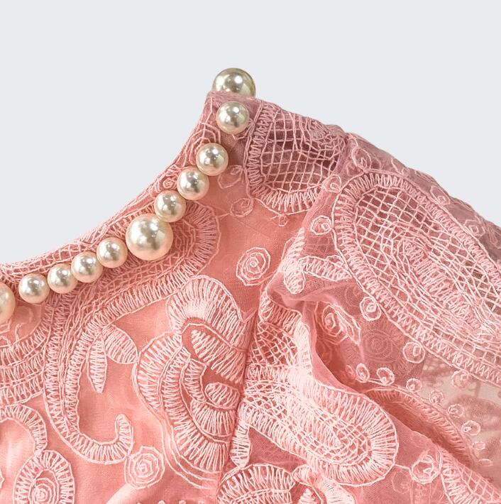 鮮やかな刺繍レースドレスワンピース