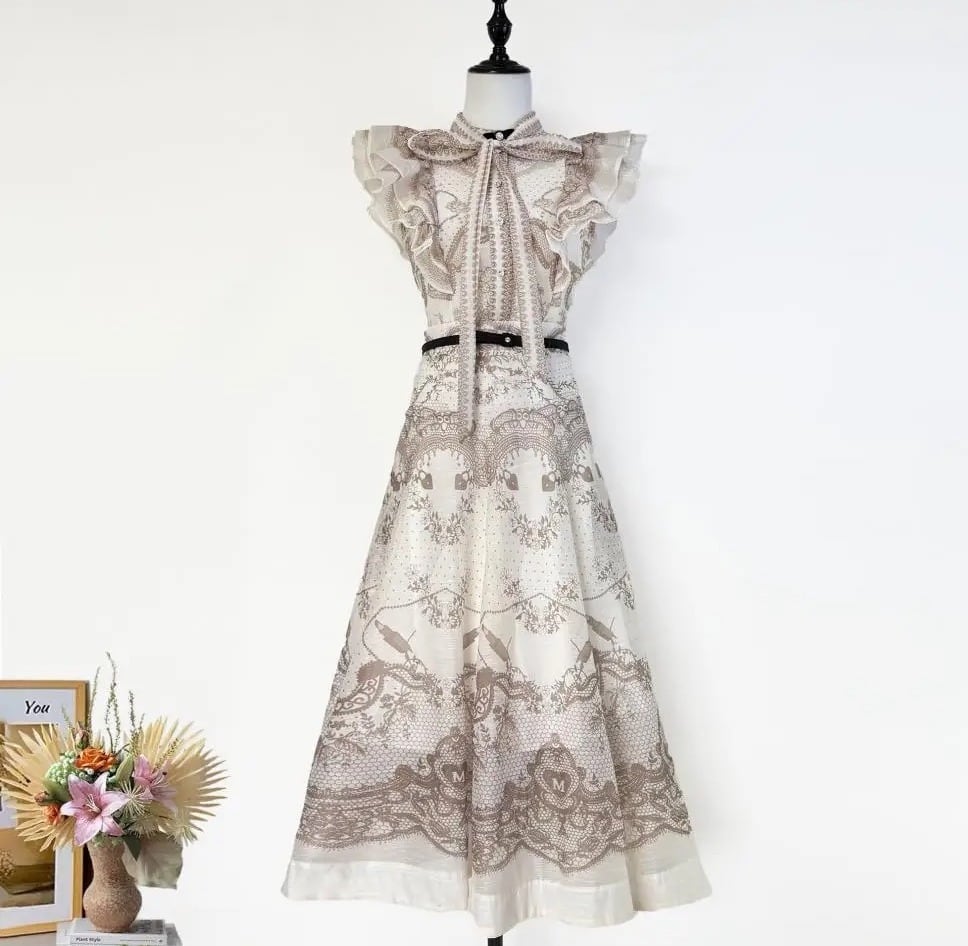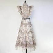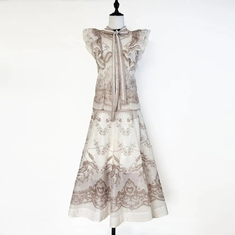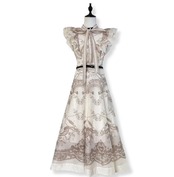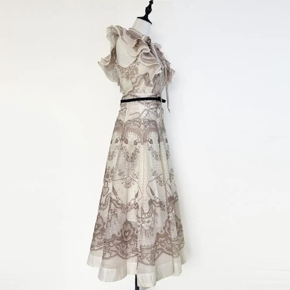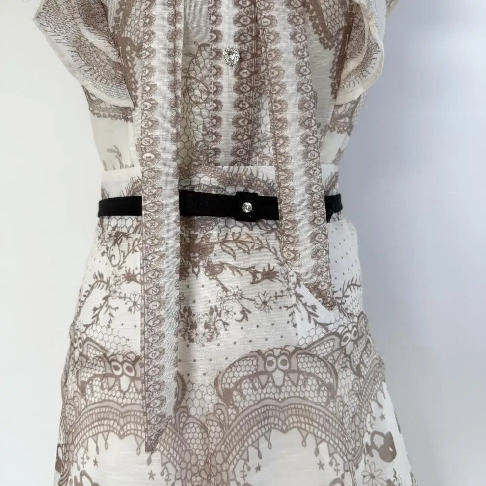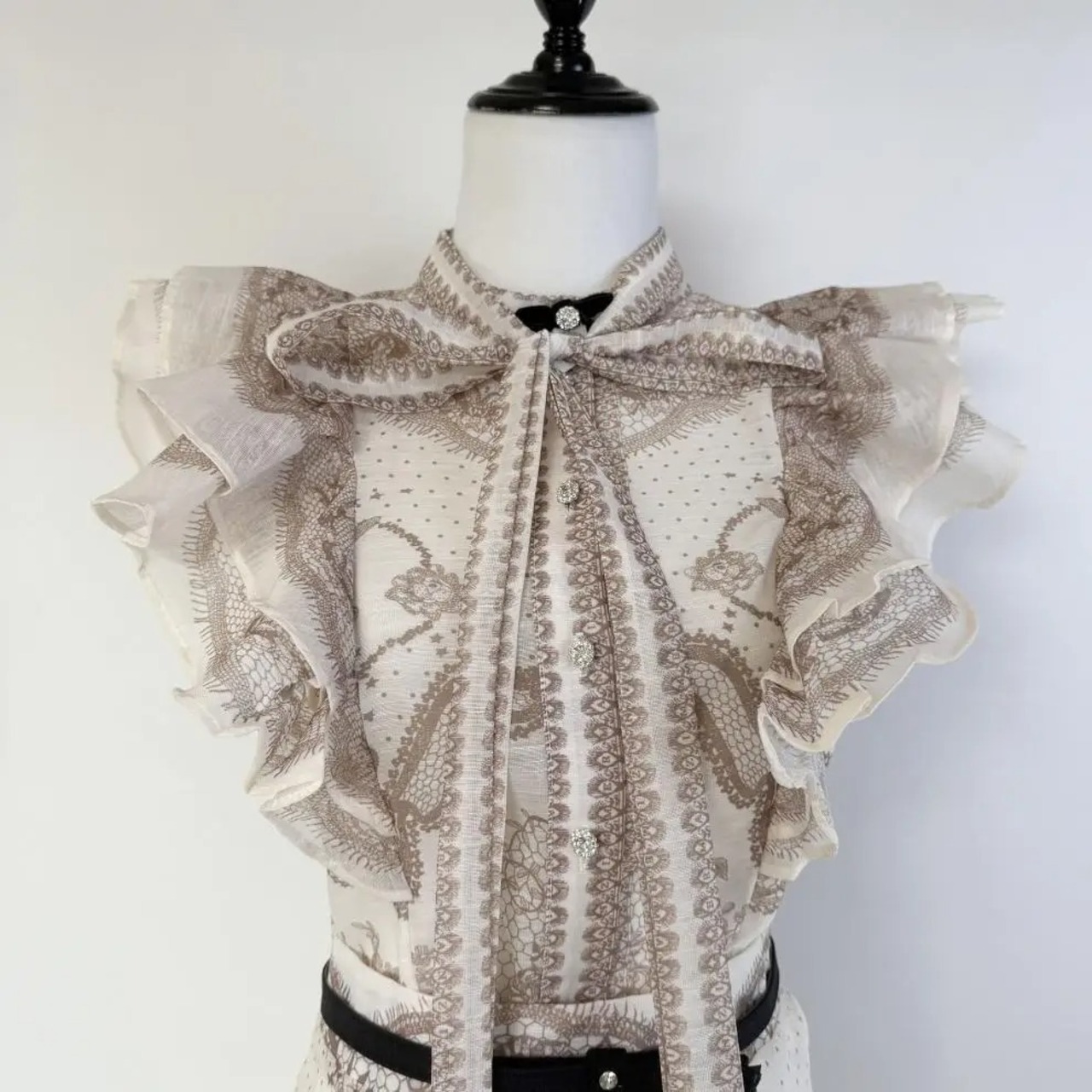 送料無料 ◆ D2383 ブラックベルト & リボン付き ポルカドット ハート レース柄 ビジューボタン ラッフルスリーブ ブラウス & フレア ロングスカート セットアップ 《 アイボリー ×ブラウン 》 4点セット 上下セット コーデセット 水玉 ドット セットアップ シャツ ロングスカート クラシカル パーティードレス お呼ばれ パーティーワンピ 袖付き お呼ばれワンピース ロング 衣装 インポート パーティー オケージョンドレス お呼ばれ お出かけ 発表会 茶色