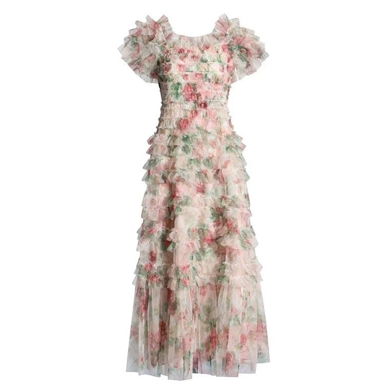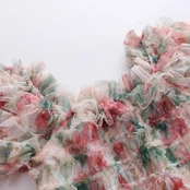 送料無料 ◆ D2400 フラワー チュール ティアード ラッフルフリル オフショル 2way ロング ワンピース 《 ピンク×グリーン 》 半袖 ライトピンク ライトグリーン 花柄裏地あり インポートワンピース パーティードレス メール便 フリル パーティー 結婚式 お呼ばれ シアーワンピース 長袖 ワンピース 同窓会 謝恩会 ドレス 膝丈 マキシ ロング 発表会 卒業パーティー 刺繍ドレス クリスマス レースワンピース 柄ワンピース