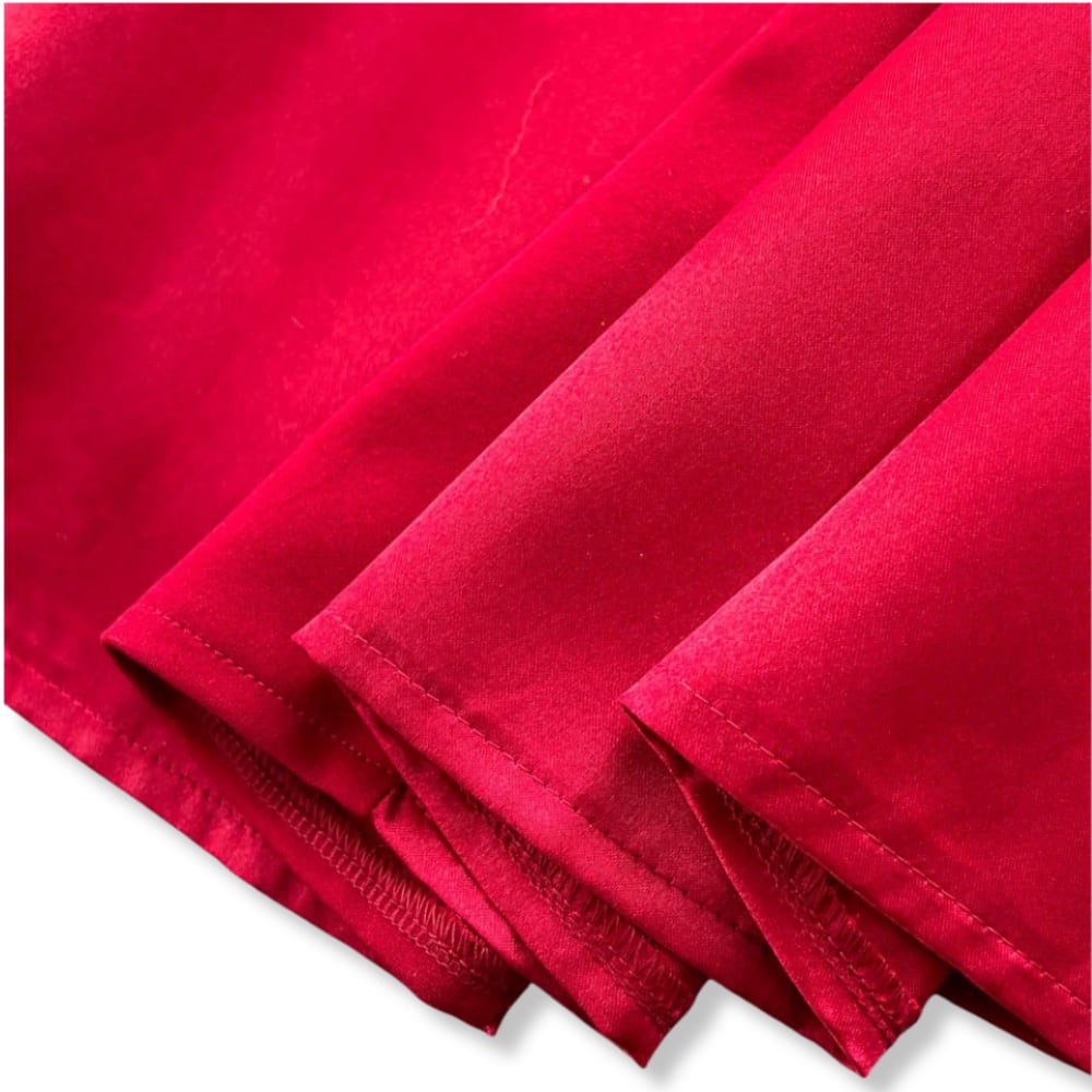 袖口やサイドスカート部分はサテン生地で異素材ミックスになっています