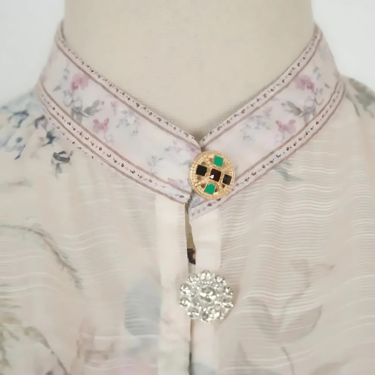 ビジューやフラワー 型、ゴールドやシルバーの様々なボタンを使用してます