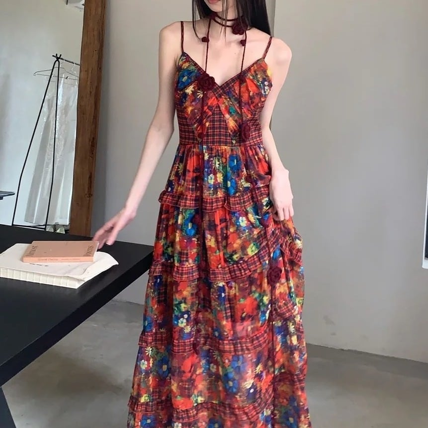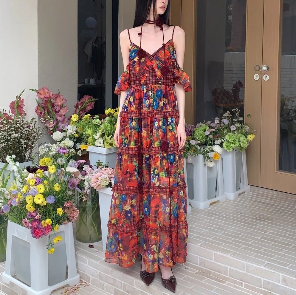送料無料 ◆ D2442 フラワーニットリボン付き チェック×フラワー 2way ロング キャミ ワンピース《レッド×マルチカラー》袖取り外し可能 レッドライン ブラックライン ブラック チェック 袖あり 長袖 レトロ ヴィンテージ クラシック 袖あり 膝丈 ミモレ 膝下 ロング 袖あり おしゃれ お呼ばれ 他と被らない お洒落 パーティードレス メール便 総柄 セレカジ パーティー 花 袖付き エレガント エレカジ お呼ばれワンピース ひざ丈 ゲスト 発表会 女子会 ミディ 華やか カラフル