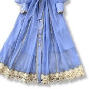 送料無料 ◆ D2455 リボン付き ゴールドレース ビジューボタン 長袖 前開き ロング ワンピース《 ライトブルー×ゴールド 》 襟付き シャツワンピース パーティーコーデ 膝丈 インポート パーティー メール便 パーティースカート パーティーコーデ お食事 ひざ丈 おしゃれ 無地 パーティー お出かけ カジュアル ビジュー インポートスカート 衣装 フレア モード