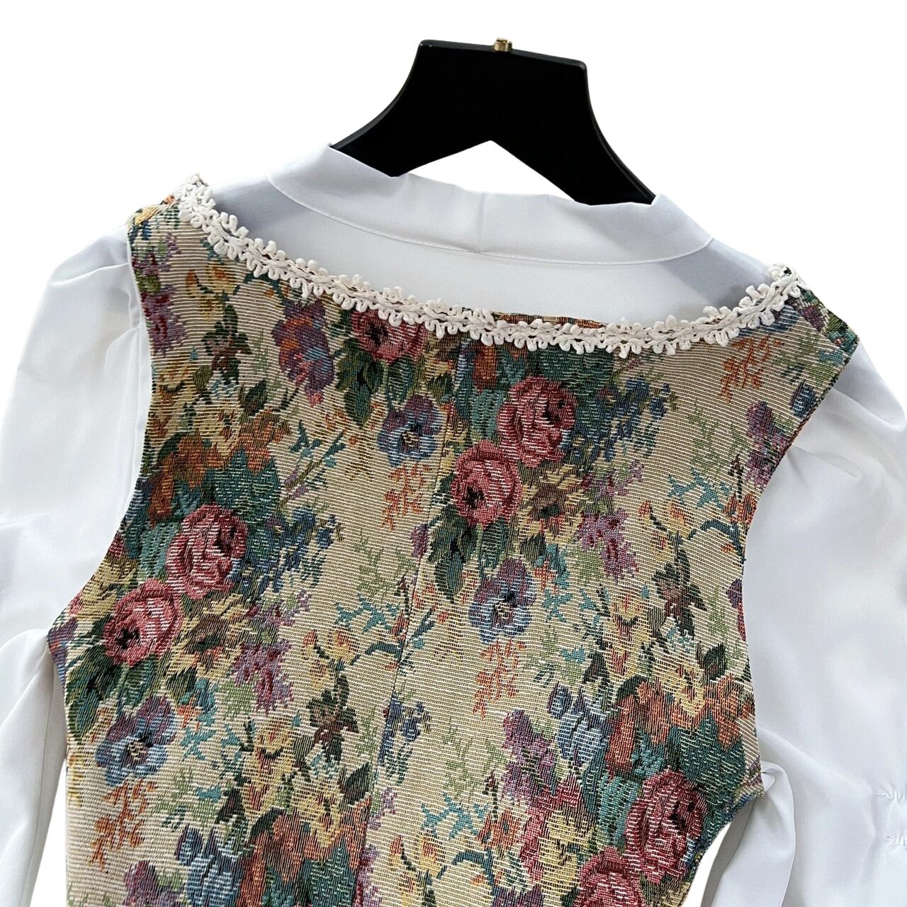 送料無料 ◆ D2469 2点セット パールボタン ゴブラン ベスト & ボウタイ 長袖 シャツ ワンピース 《 ホワイト 》ベストセット ジレセット ワンピースセット 黒 ブラックドレス シャーリング 膝下 ミモレ丈 長袖 インポート パーティードレス 膝下 ミモレ丈 長袖 インポート パーティードレス メール便 黒ワンピース パーティーワンピ お呼ばれワンピース お食事 おしゃれ 袖あり インポートワンピース ブラック お呼ばれ 衣装 オケージョン クラシカル クラシック