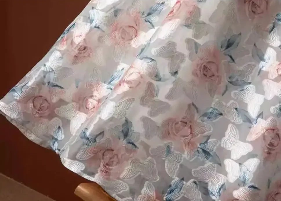 ウエストから下は光沢の綺麗なバタフライと透かしローズ柄