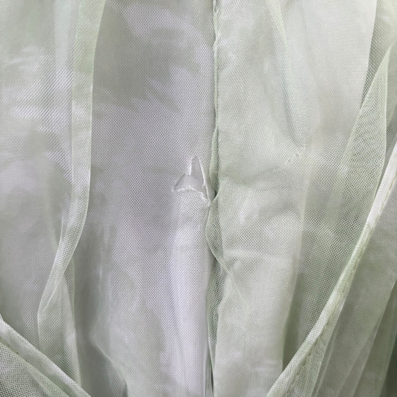 背面ファスナー横チュールに穴あり(画像4枚目をご参照ください)