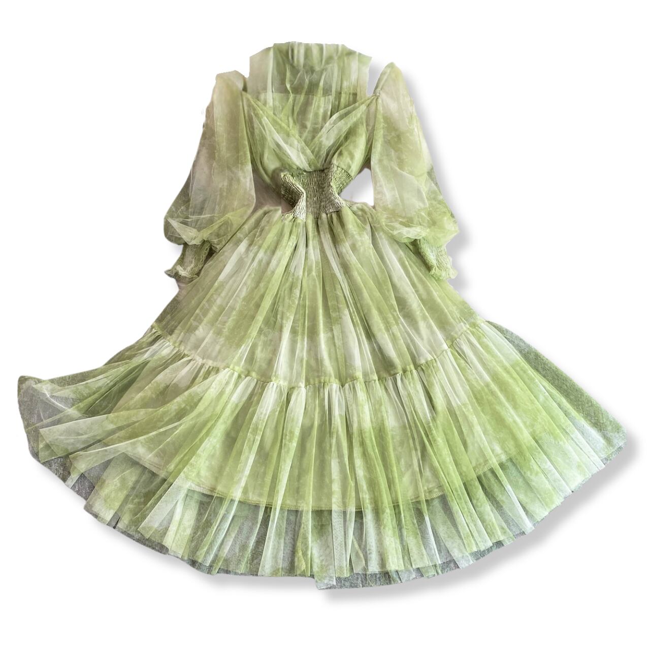 《訳ありアウトレット》送料無料 ◆ D2435 マーブル オープン ショルダー ウエスト シャーリングゴム バルーンスリーブ フレア ロング ワンピース《ライトグリーン》 パーティードレス フレア 上品 長袖 袖あり 鮮やかコーデ ミモレ 無地 マキシ ロング 膝下丈 女子会 パーティー ドレス シフォン ロングスリーブ フレアスカート 結婚式 上品 カジュアル お出かけ お呼ばれ 衣装 謝恩会 オケージョンドレス オケージョン 発表会 卒業パーティー 結婚式 2次会 訳ありアウトレット 訳あり
