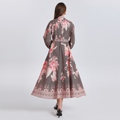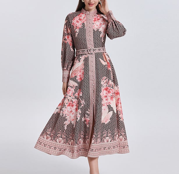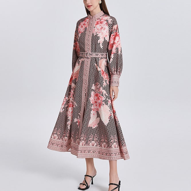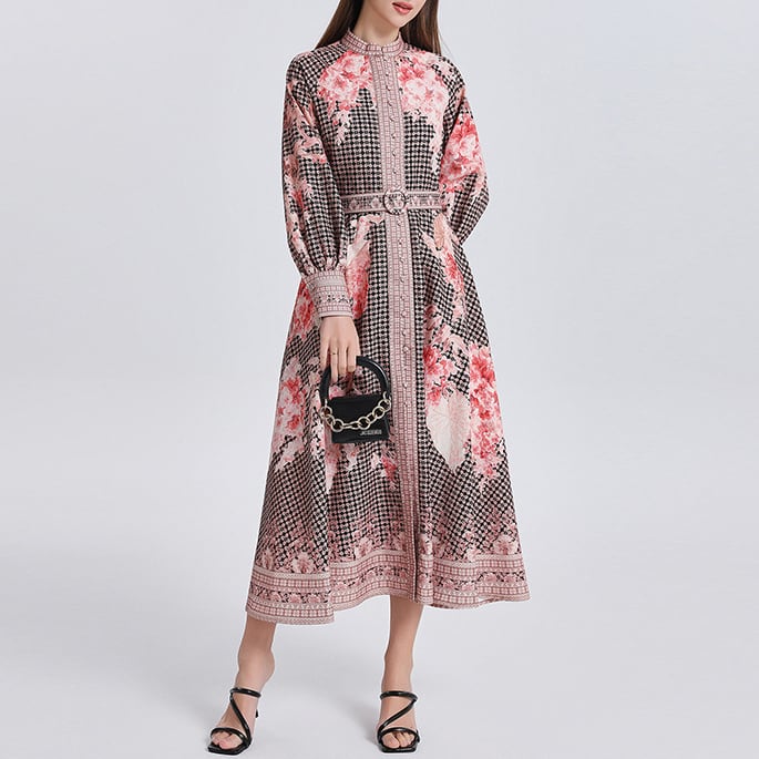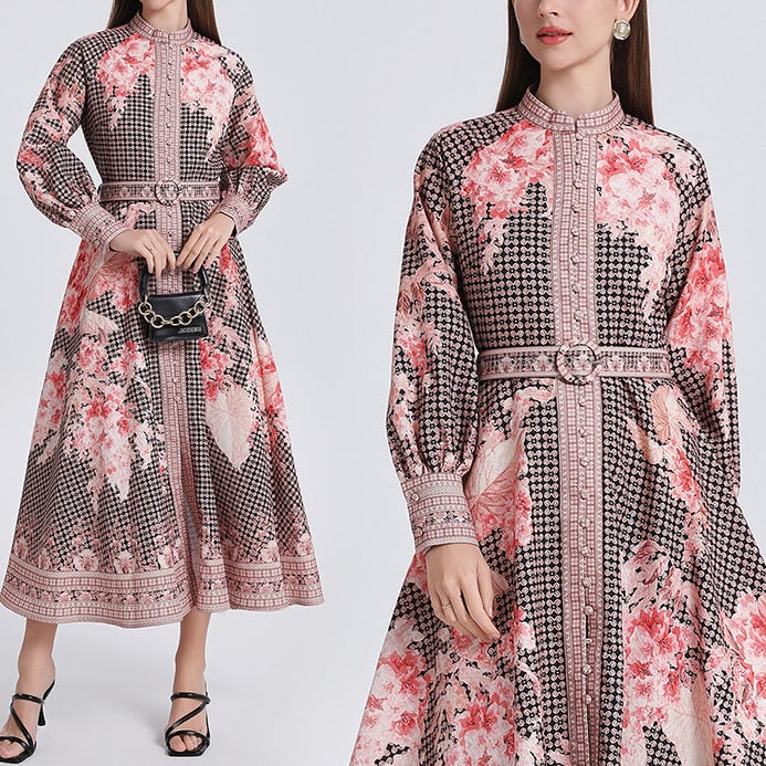 送料無料 ◆ D2487 ベルト付き フラワー 胡桃ボタン 前開き クラシカル ロング ワンピース《ブラック×ベージュピンク》花柄 ラグランスリーブ クラシカル ブラック 黒 白 ベージュ ロングワンピース エレガント アニマル柄 レオパード柄 ロングワンピ クラシック ヴィンテージ ロング インポートワンピース お呼ばれ パーティードレス メール便 パーティーワンピ 袖付き お呼ばれワンピース マキシ 長袖 インポートワンピース お呼ばれ 上品 パーティー 衣装 柄物 柄ワンピース