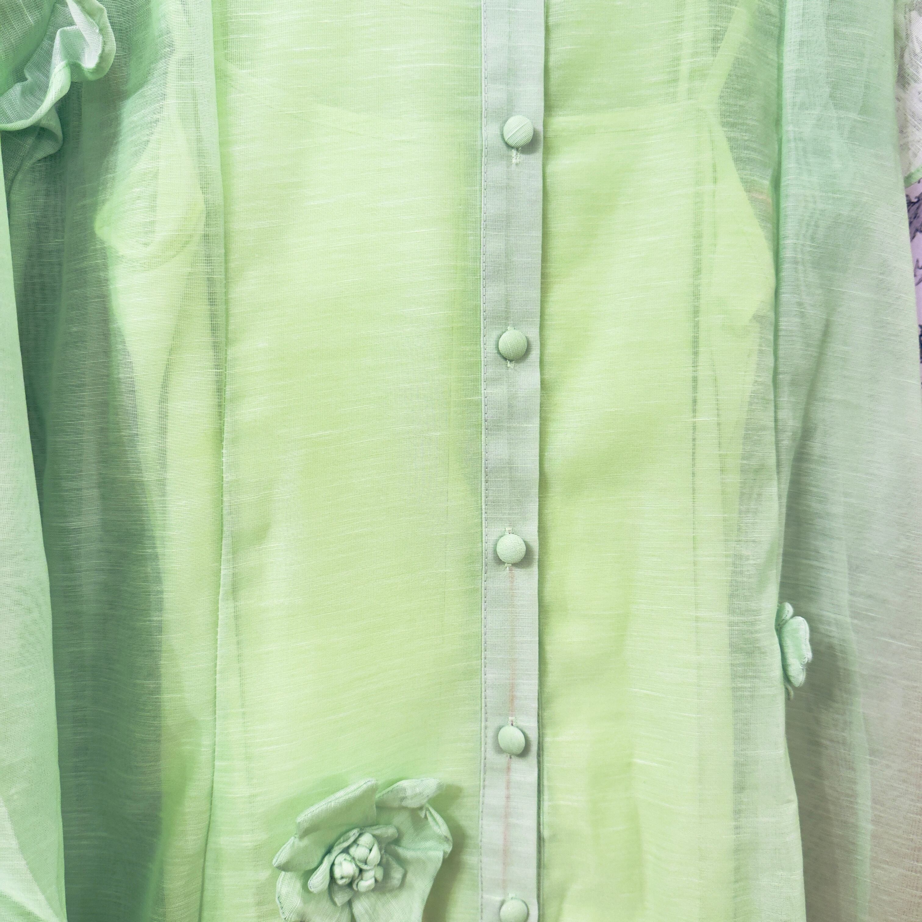 《訳ありアウトレット》送料無料 ◆ D2483 ペチコート&ベルト付き フラワーモチーフ 胡桃ボタン 前開き スタンドネック ロング ワンピース《ライトグリーン》 パーティードレス フレア 上品 長袖 袖あり 鮮やかコーデ ミモレ 無地 マキシ ロング 膝下丈 女子会 パーティー ドレス シフォン ロングスリーブ フレアスカート 結婚式 上品 カジュアル お出かけ お呼ばれ 衣装 謝恩会 オケージョンドレス オケージョン 発表会 卒業パーティー 結婚式 2次会 お呼ばれ 訳あり SALE B品