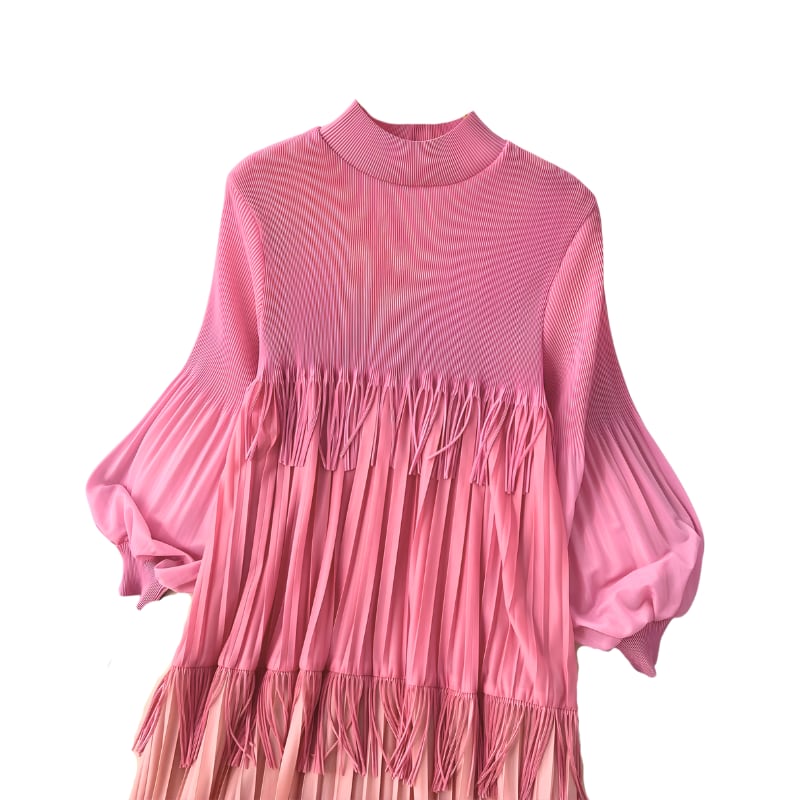 送料無料 ◆ D2520 プリーツ グラデーション フリンジ スタンドネック バルーンスリーブ ロング ワンピース《 ピンク 》配色 4色 グラデーション パステル 無地 パーティードレス お呼ばれ 結婚式 メール便 カラフル パープル ピンク ホワイト ベルト フリル パーティー 結婚式 お呼ばれ ノースリーブ ワンピース ドレス ロングワンピース パールボタン 卒業パーティー 謝恩会 同窓会 発表会《柴田阿弥さん・新井恵理那アナご着用》