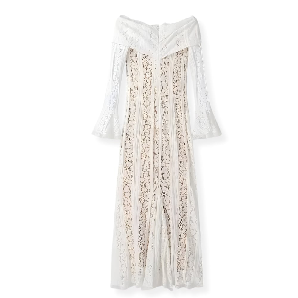 送料無料 ◆ D2581 レース オフショルダー ベルスリーブ ロング ワンピース 《 ホワイト 》 長袖 ホワイト アイボリー ベージュ 裏地あり インポートワンピース パーティードレス メール便 フリル パーティー 結婚式 お呼ばれ シアーワンピース 長袖 ワンピース 同窓会 謝恩会 ドレス 膝丈 マキシ ロング 発表会 卒業パーティー 刺繍ドレス クリスマス レースワンピース 柄ワンピース