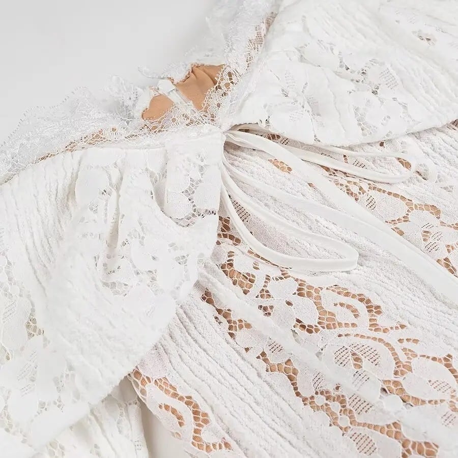 オフショルダーの総レースワンピース
