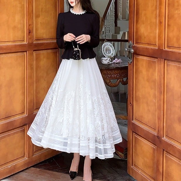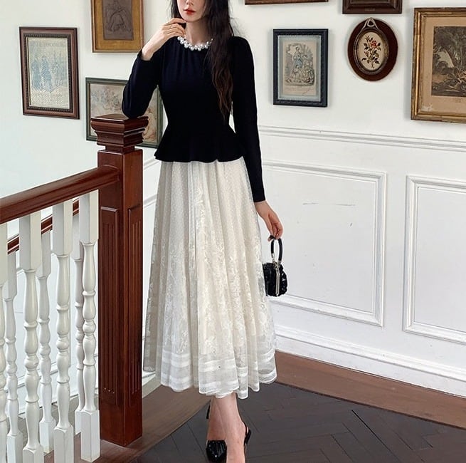 送料無料 ◆ D2554 パールネック ブラック × ホワイトレース 切替 ロング ワンピース《 ブラック×ホワイト 》切替 レースワンピ ワンピース ロングワンピース エレガント レディ ロングワンピ クラシカル クラシック ヴィンテージ フラワー インポートワンピース お呼ばれ パーティードレス パーティーワンピ 袖付き お呼ばれワンピース バイカラー インポートワンピース お呼ばれ 衣装 結婚式 同窓会 発表会 セレモニー セレモニーワンピース オケージョン