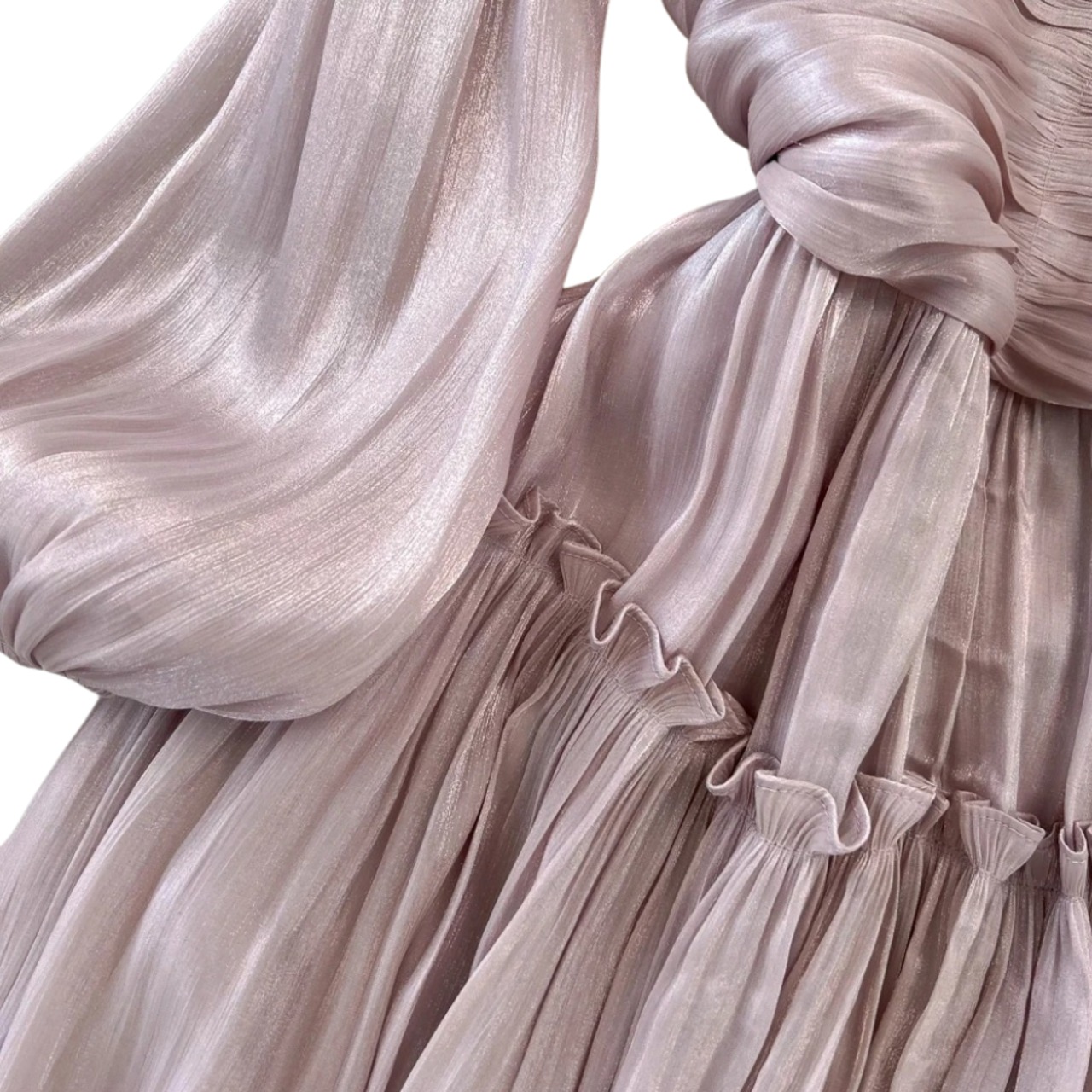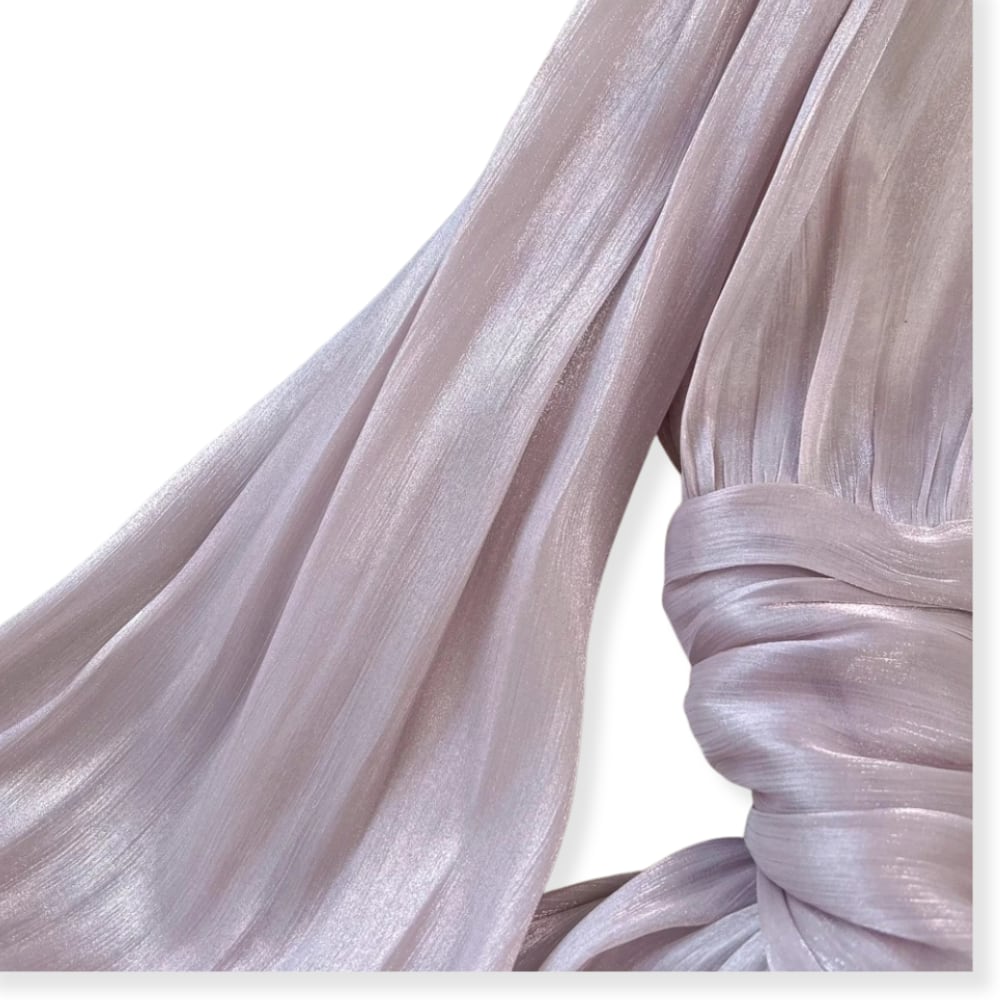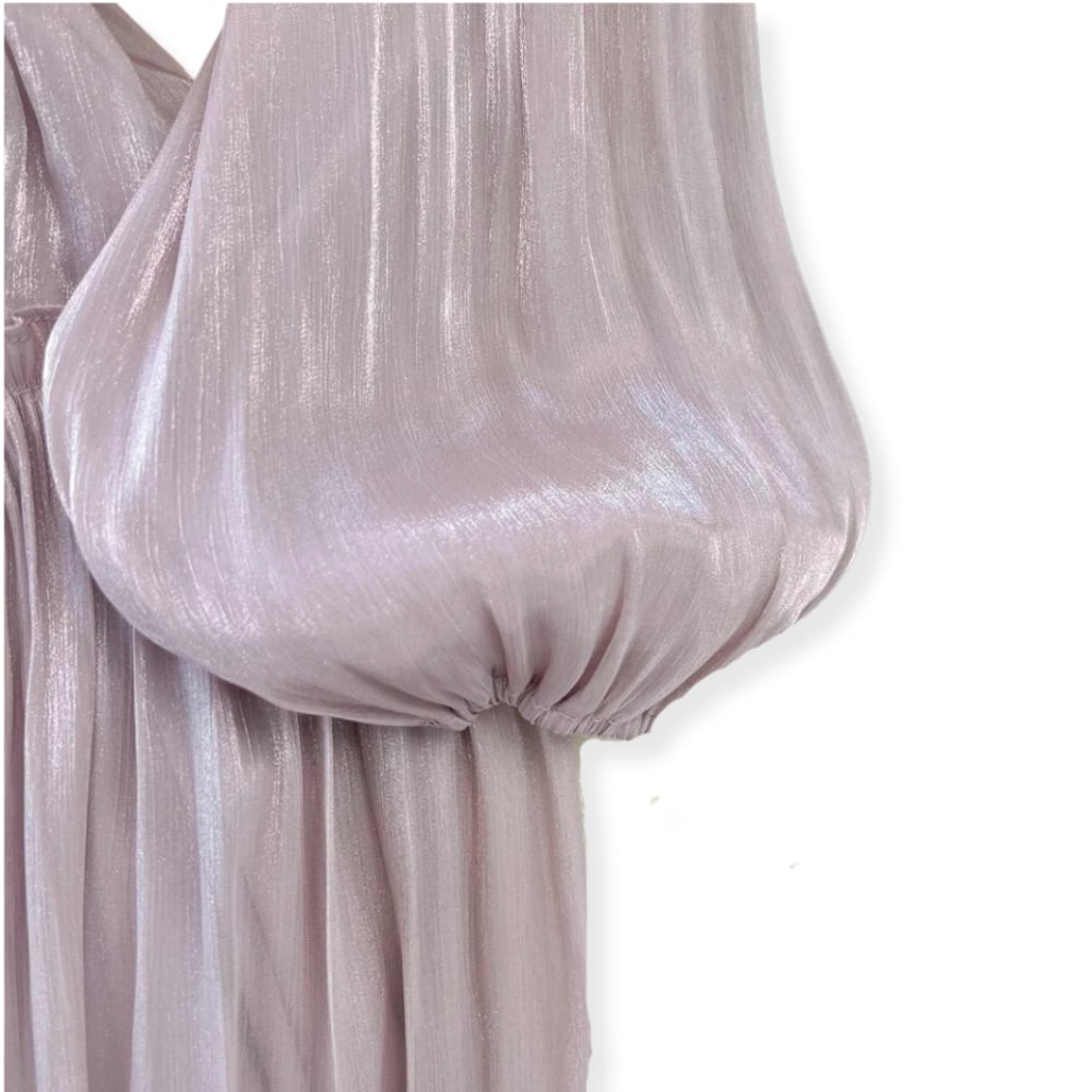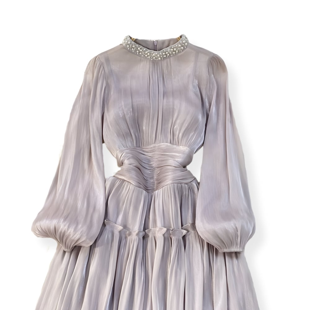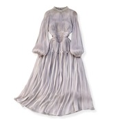 送料無料 ◆ D2564 パール&ビーズ スタンドネック ウエストギャザー シャイニー バルーンスリーブ ロング ワンピース《ラベンダー》光沢 ドレープ パープル 紫 ピンク 長袖 フロア丈 マキシ丈 膝下 インポート パーティードレス フレア メール便 パーティーワンピ お呼ばれワンピース お出かけ おしゃれ 袖あり インポートワンピース 上品 衣装 結婚式 フロア 清楚 発表会 ウェディング 2次会 ドレス 卒業パーティー 同窓会 謝恩会