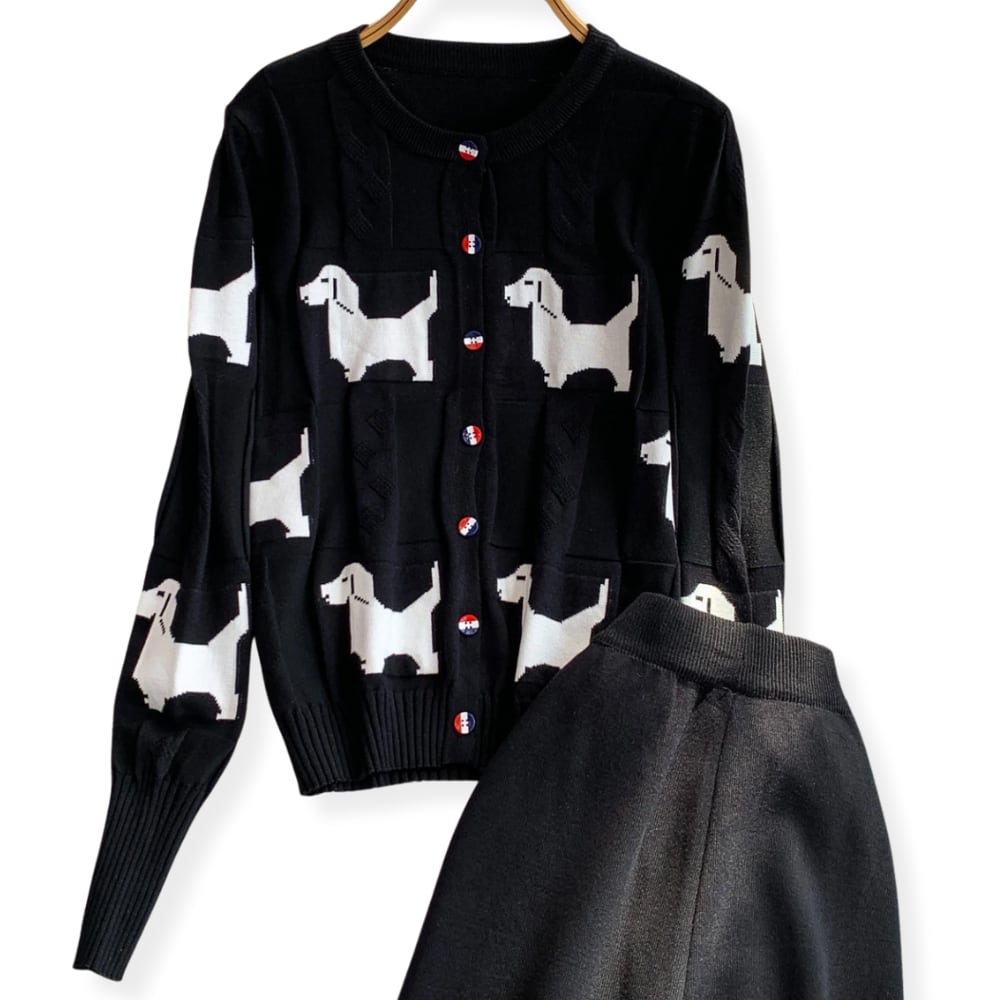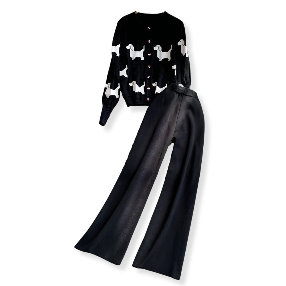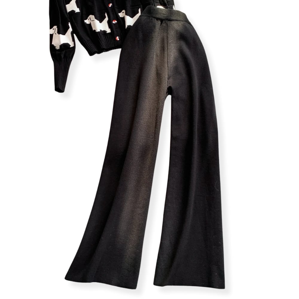 送料無料 ◆ D2568 トリコロールボタン ドッグ カーディガン & ニット ロングパンツ セットアップ《 ブラック 》 2点 上下セット パンツセット ニットカーデ パンツ インポート パーティー ニットジャケット ニットアウター カジュアル 無地 柄 上下 上下セット お食事 お出かけ おしゃれ 袖あり インポートワンピース ウエストゴム ノースリーブニット ニットカーデ ニットパンツ 衣装 緑コーデ