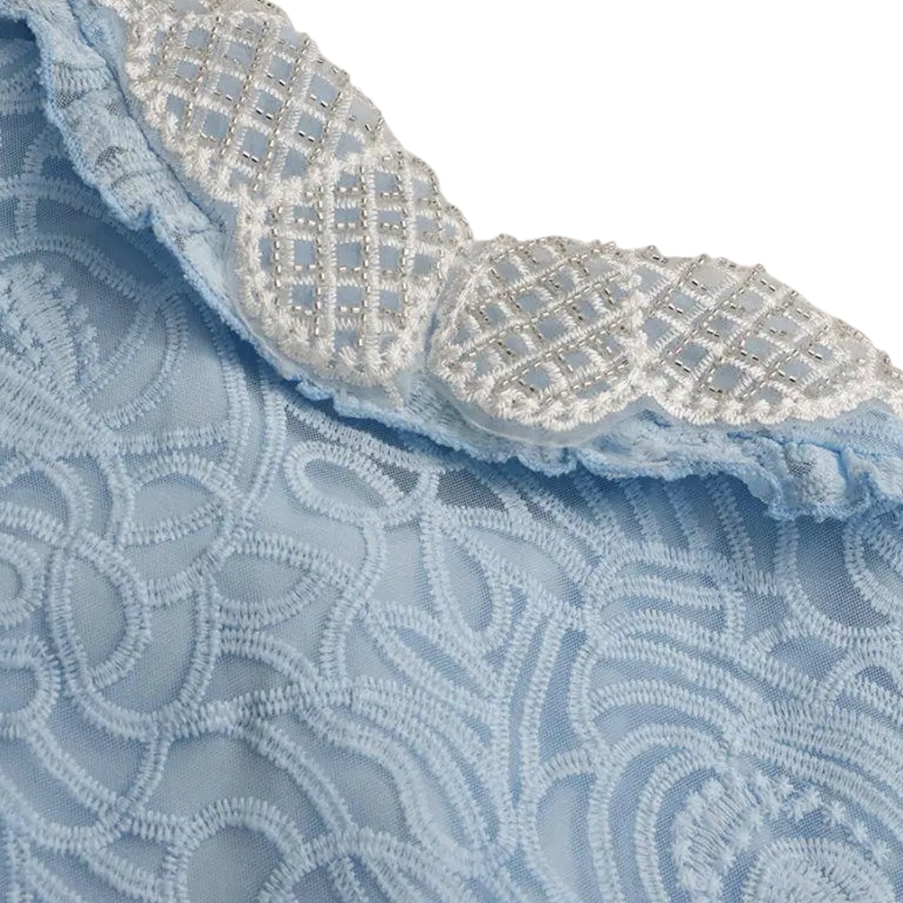 真っ白な糸で格子柄に刺繍が施されたホワイトレースが重なっています