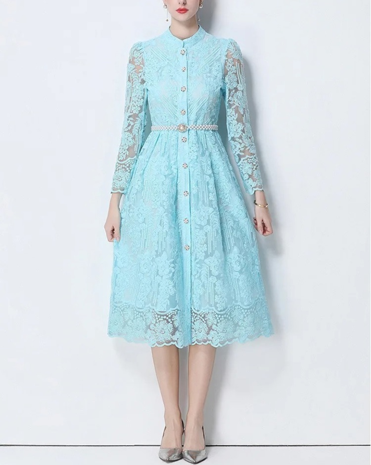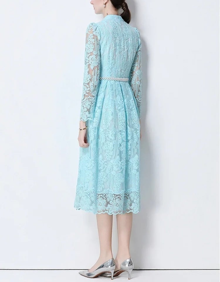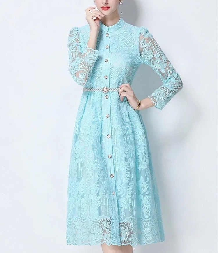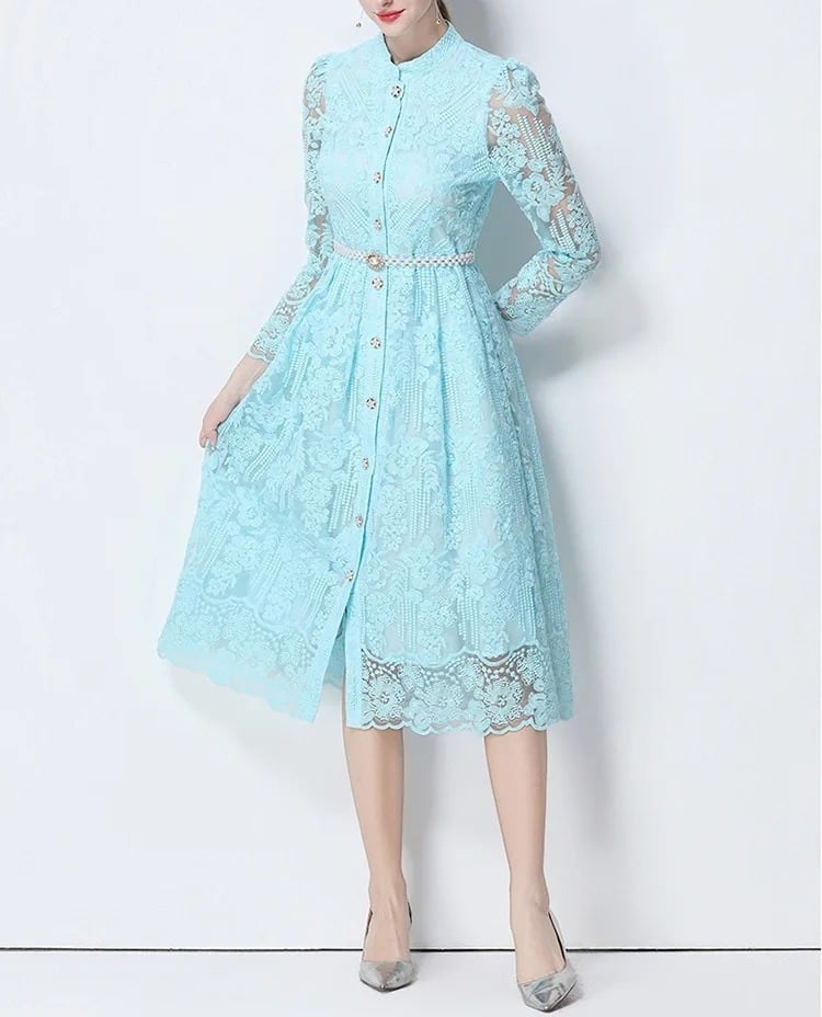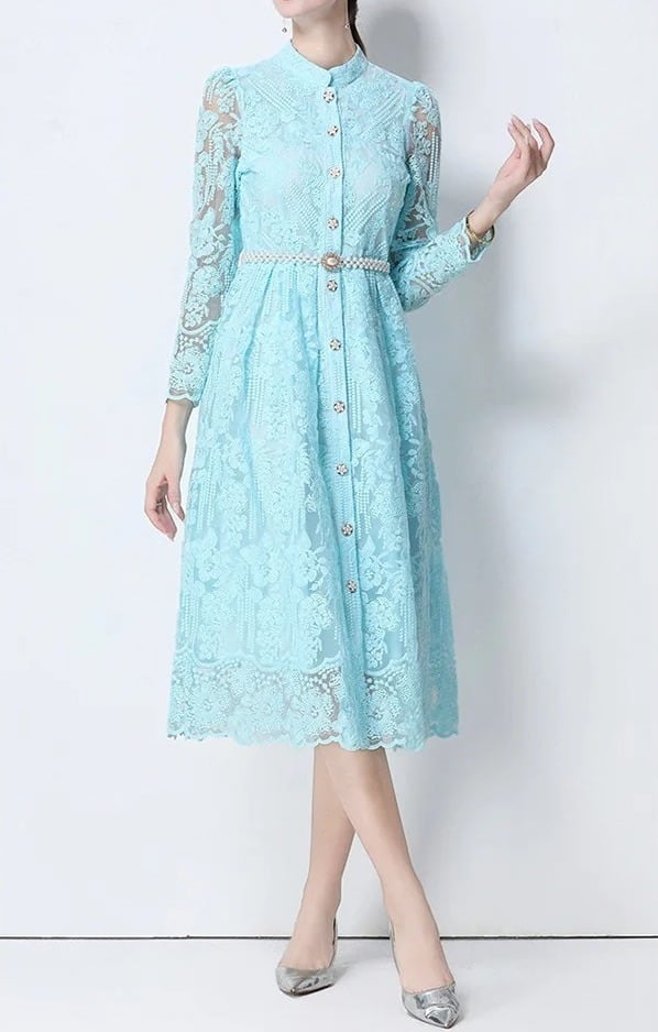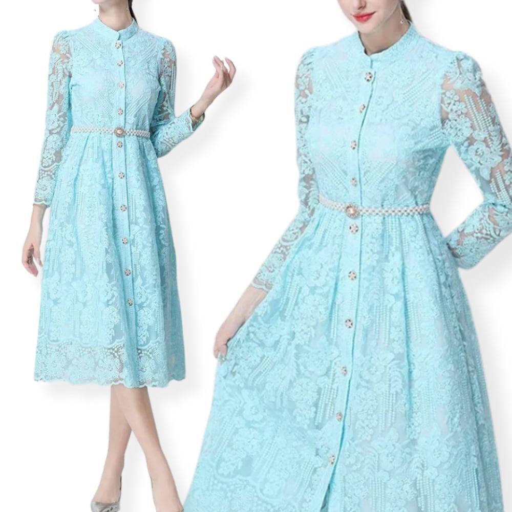 送料無料 ◆ D2583 パールベルト付き 刺繍 レース 前開き クラシカル ドレス ワンピース《 ミントブルー 》 レースワンピ レースドレス ロングワンピース エレガント レディ ロングワンピ クラシカル クラシック ヴィンテージ バラ フラワー インポートワンピース お呼ばれ パーティードレス メール便 パーティーワンピ 袖付き お呼ばれワンピース ひざ丈 半袖 インポートワンピース お呼ばれ 衣装 結婚式 同窓会 発表会
