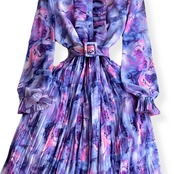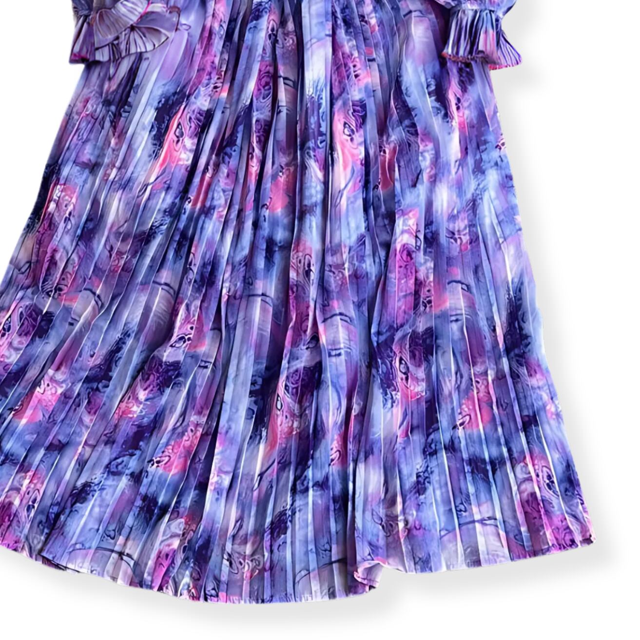 《訳ありアウトレット》送料無料 ◆ D2438 ベルト付き スタンド プリーツフリルネック マーブル プリーツ ロング ワンピース《 パープル 》長袖 プリーツスリーブ マーブルカラー カラフル マルチカラー キャンディーカラー パステル ブライト カラフルワンピース インポートワンピース パーティードレス 衣装 メール便 パーティーワンピ 袖付き カジュアル お食事 ひざ丈 おしゃれ 無地 ロングワンピース インポートワンピース お呼ばれ 結婚式 訳ありアウトレット わけあり 訳あり