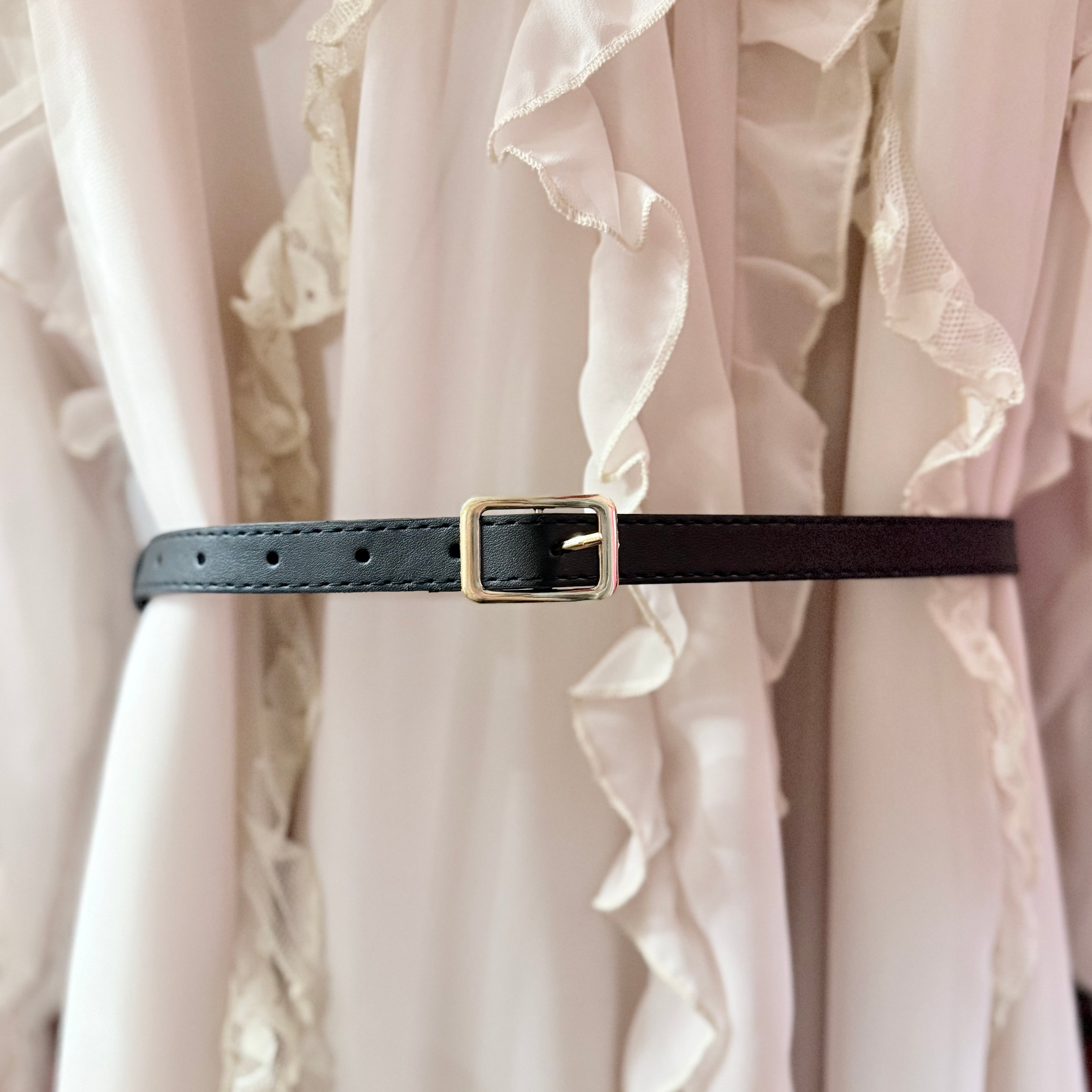 ベルトを付けると腰の位置を高く見せ自然とスタイルアップできます