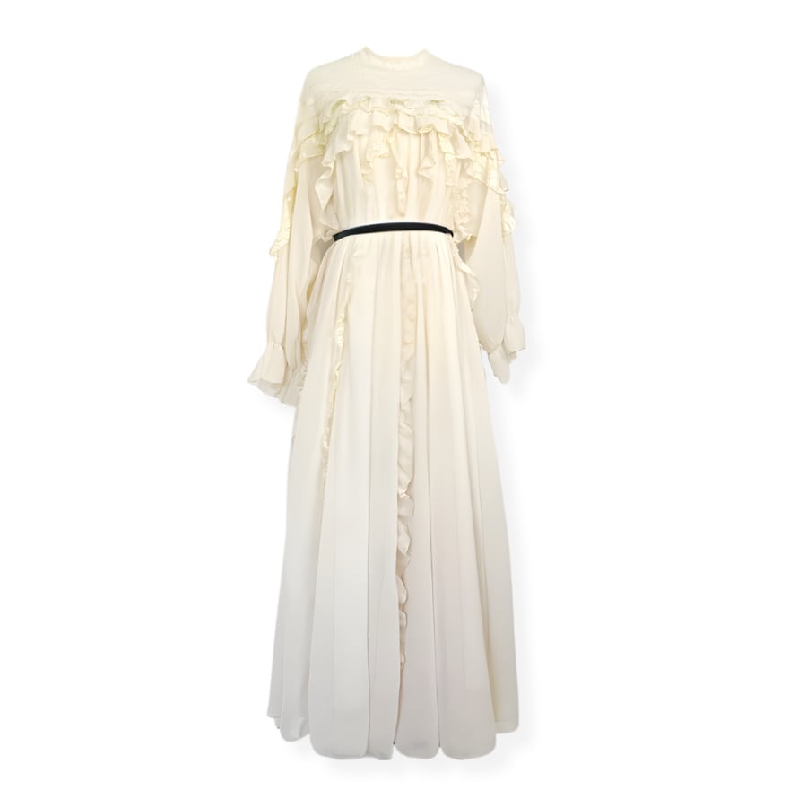送料無料 ◆ D2601 ブラックベルト付き レース フリル キャンディースリーブ ロング ドレス ワンピース《 オフホワイト 》フルレングス ホワイト 白 長袖 袖あり 白ワンピース クラシカルワンピース インポートワンピース パーティードレス 衣装 パーティーワンピ 袖付き お呼ばれワンピース お食事 ひざ丈 おしゃれ 無地 袖あり カジュアル インポートワンピース お呼ばれ お出かけ 上品 パーティー 卒業パーティー 謝恩会
