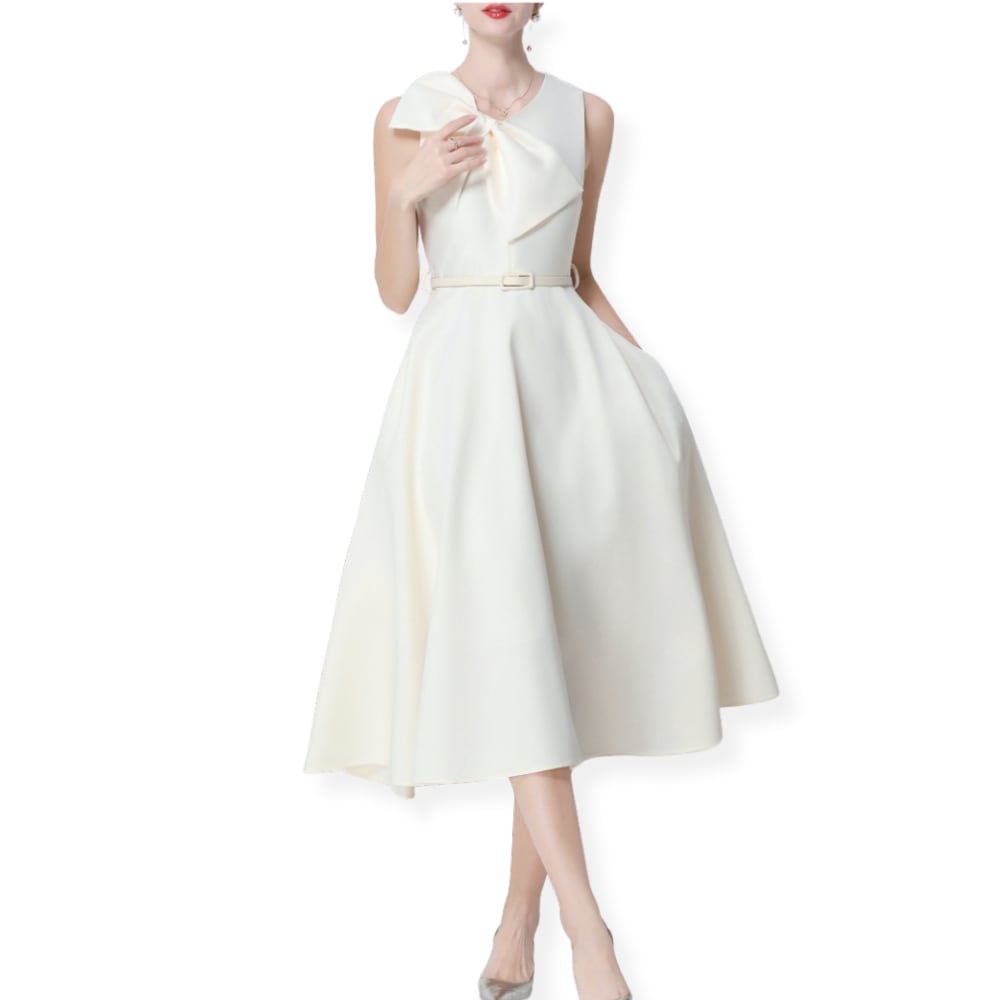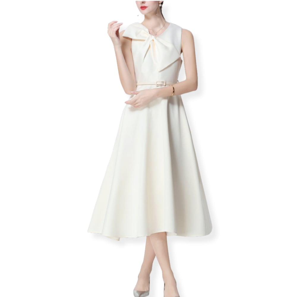 送料無料 ◆D2604 ベルト付き ショルダーリボン ノースリーブ フレア ドレス ワンピース《 パールホワイト》 ホワイト 白ワンピース 白ドレス ロングワンピース ミモレ丈 ホワイトドレス 白ワンピ インポート パーティードレス お出かけ パーティーワンピ 結婚式 2次会 パーティー お呼ばれ お呼ばれワンピース お食事 ひざ丈 おしゃれ 袖あり インポートワンピース オケージョン フォーマル オケージョンドレス 上品 エレガント