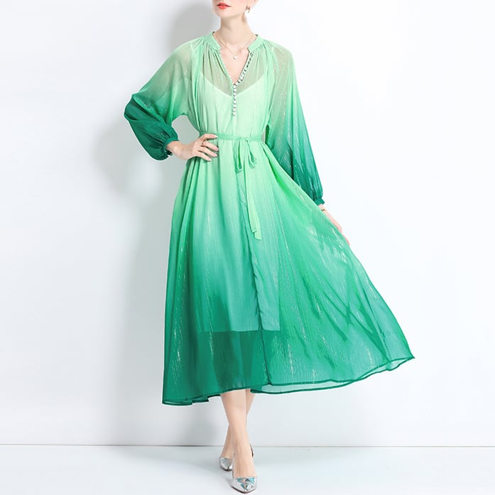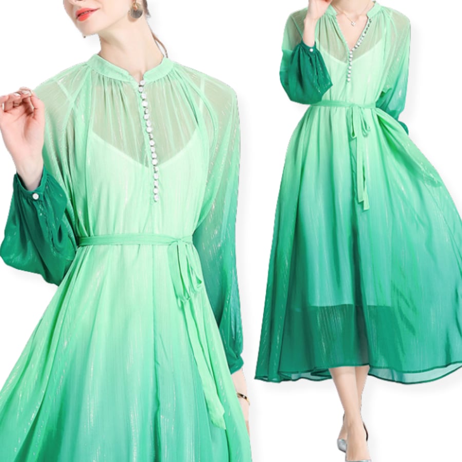 グリーンのグラデーションワンピース