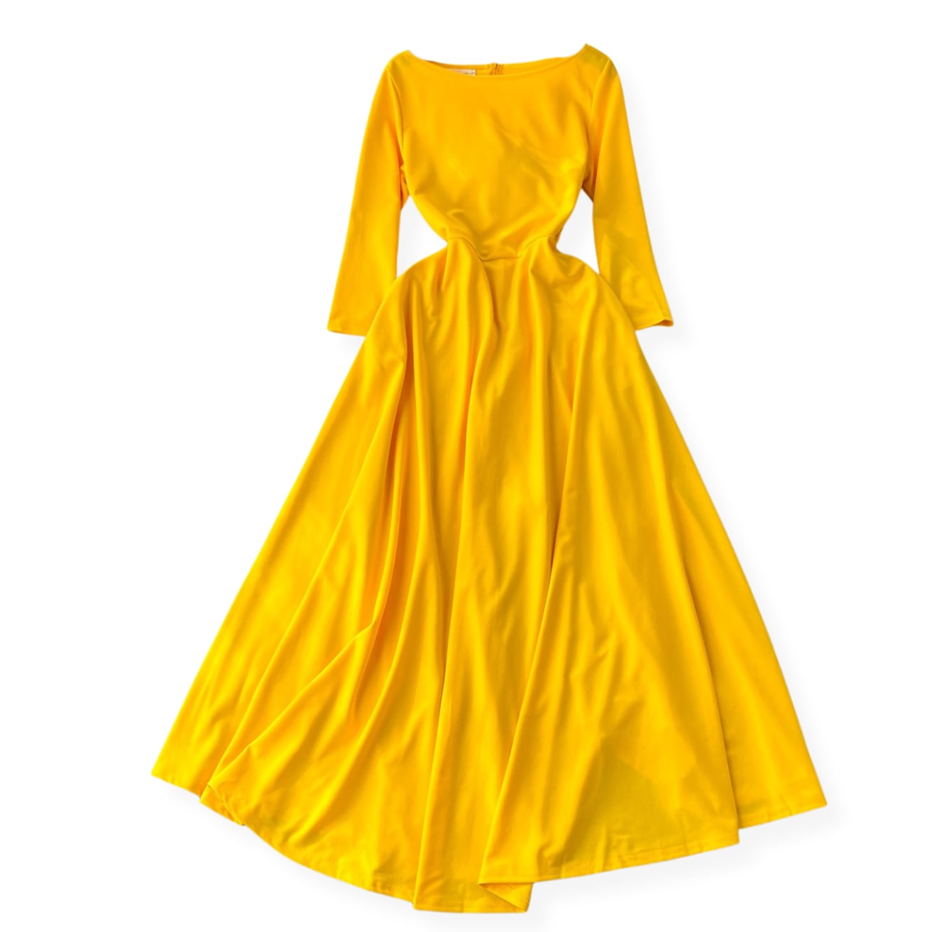 送料無料 ◆ D2616 バック ウエストリボン 7分袖 ロング ワンピース《 イエロー 》 パーティードレス 無地 クラシカルワンピース クラシック 黄色 黄色ワンピース イエローワンピース イエロー 柄なし 上品 長袖 パフスリーブ バルーンスリーブ 袖あり 総レース ミモレ マキシ ロング 膝下丈 女子会 パーティー ドレス ストライプ 結婚式 お呼ばれ 衣装 上品 オフィスカジュアル シンプル 清楚 お出かけ お食事 同窓会 発表会 卒業パーティー 衣装 謝恩会 同窓会