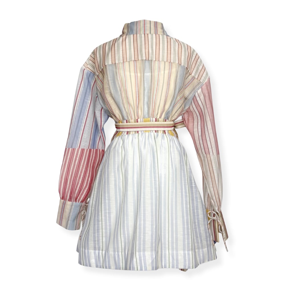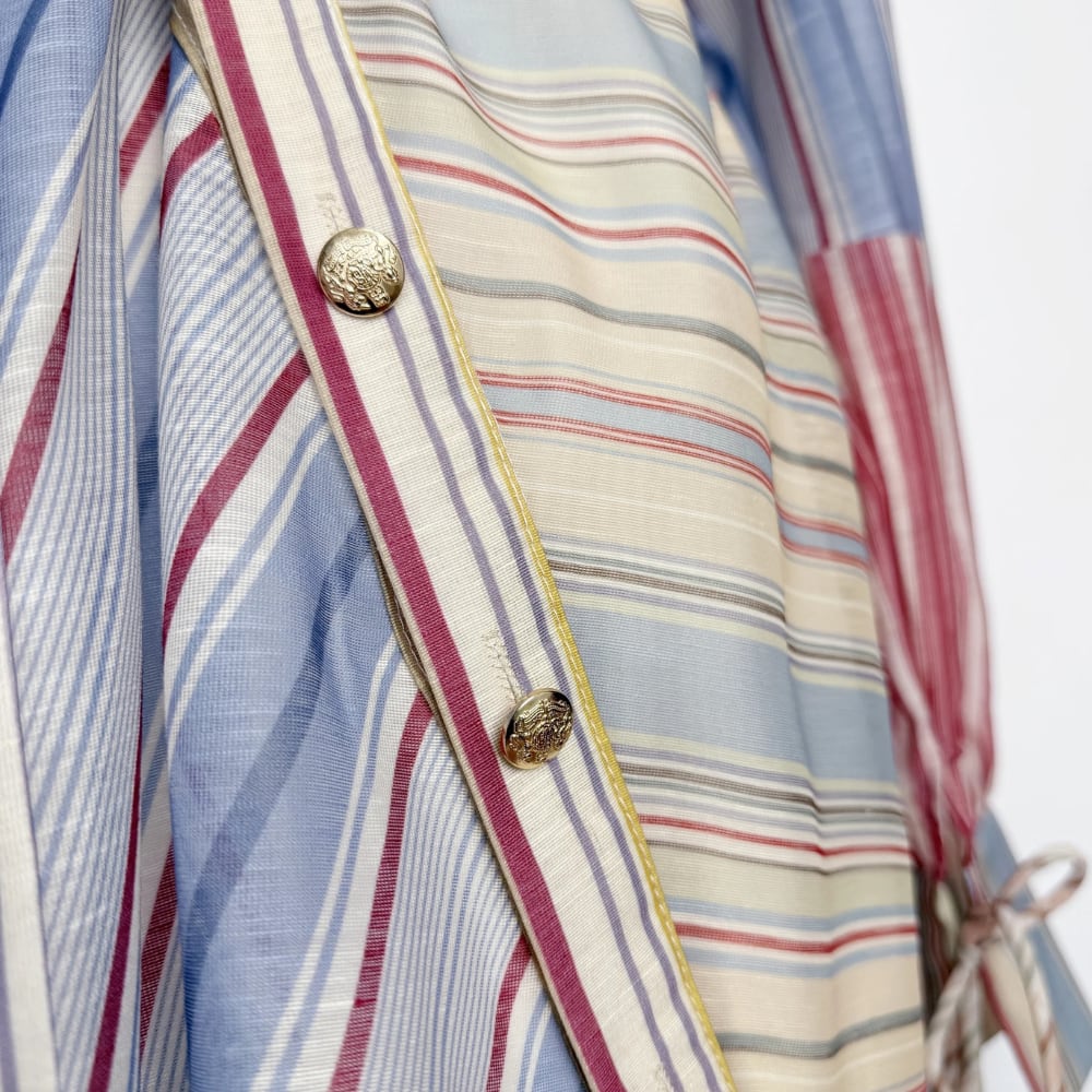 送料無料 ◆ D2627 ペチコート付き マルチストライプ アシンメトリー ゴールドボタン バルーンスリーブ ミニ シャツ ワンピース《 カラフル 》長袖 ボーダー ストライプ マルチストライプ レッド パープル ライトブルー カラフルワンピース インポートワンピース パーティードレス 衣装 パーティーワンピ 袖付き お呼ばれワンピース お食事 ひざ丈 おしゃれ ロングワンピース 袖あり インポートワンピース デイリー 衣装 カジュアル お出かけ 上品