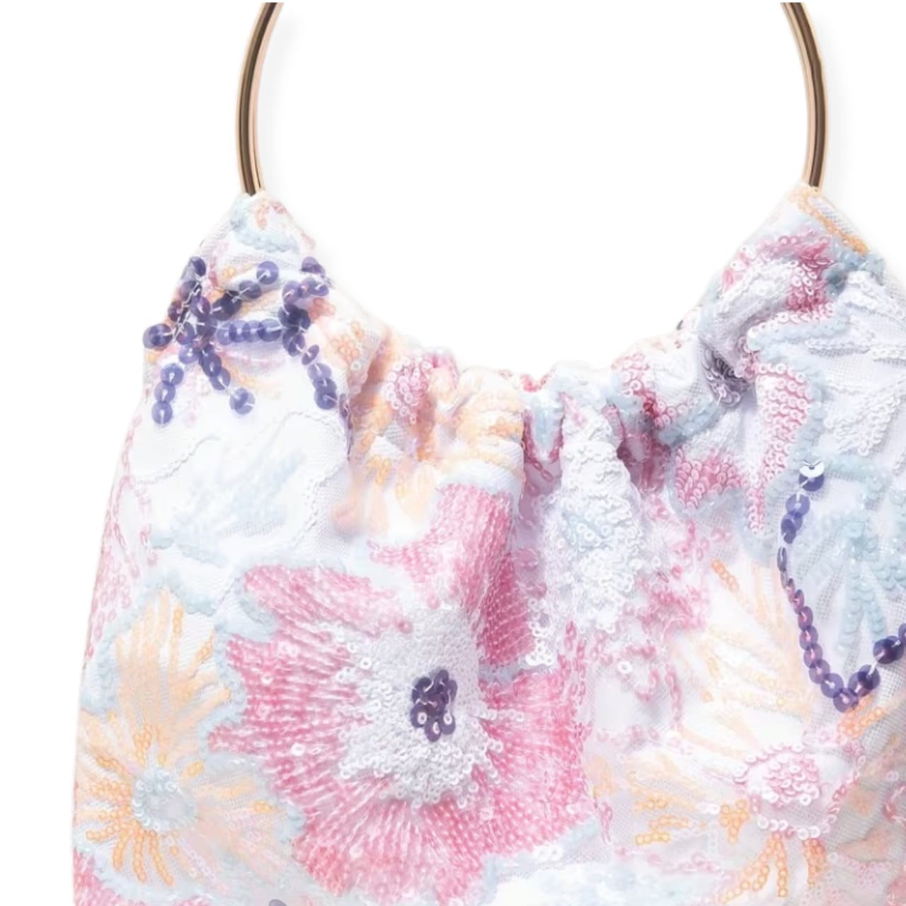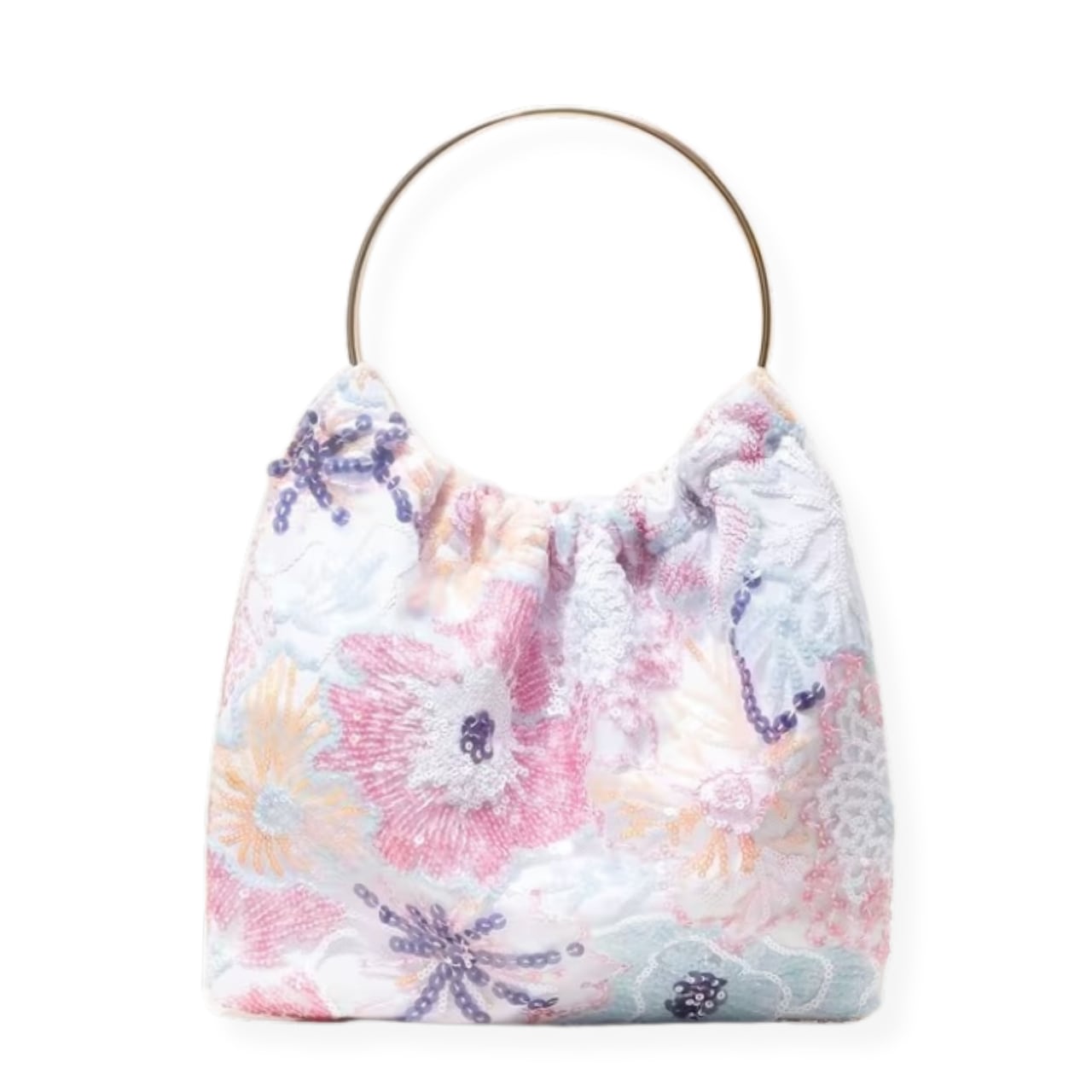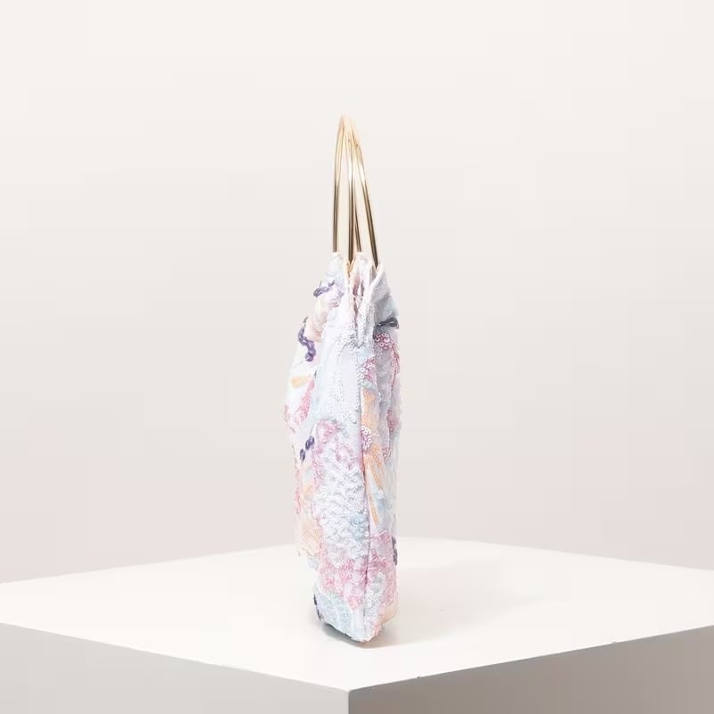 D2644 ゴールド ループハンドル フラワー スパンコール 刺繍 ハンドバッグ《 ホワイト×カラフル》白 カラフルバッグ マルチカラー 鞄 バッグ 刺繍鞄 刺繍 スパンコール刺繍 お出かけバッグ 華やか鞄 プレゼント ギフト 浴衣 着物鞄 エレガント 上品 インポートバッグ インポート カラフルバッグ バースデー ギフト プレゼント 誕生日 プチギフト
