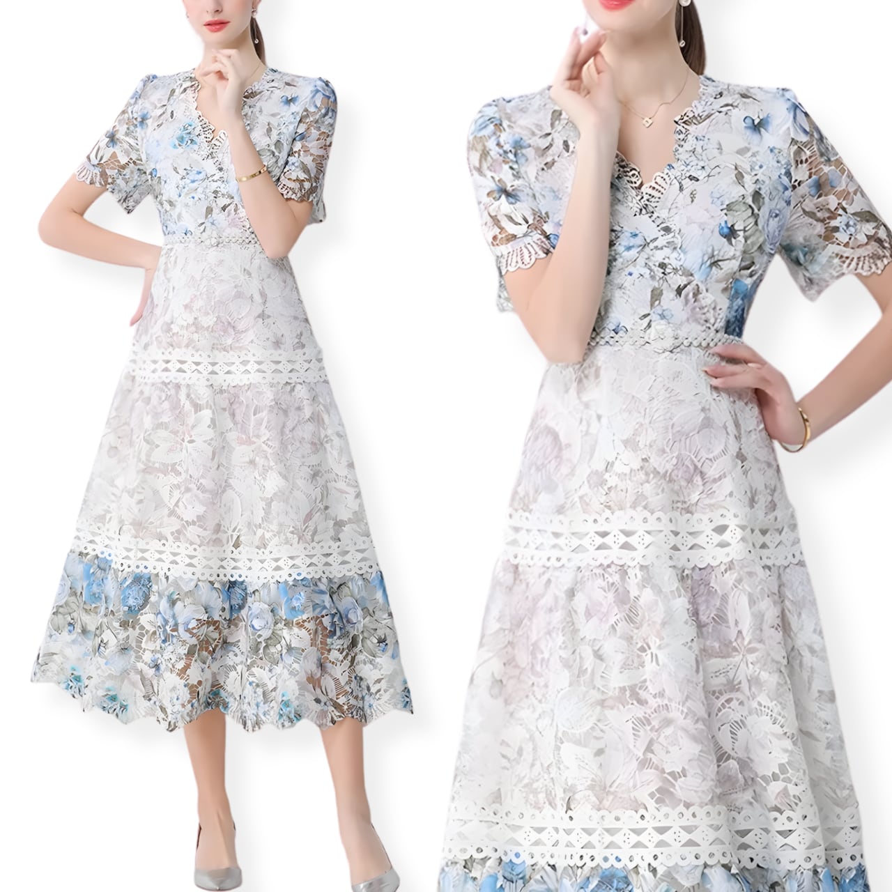送料無料 ◆ D2663 パールベルト付き フラワー クロッシェレース ハーフスリーブ ドレス ワンピース《 ホワイト×ブルー 》 レースワンピ レースドレス ロングワンピース エレガント レディ ロングワンピ クラシカル クラシック ヴィンテージ フラワー インポートワンピース お呼ばれ パーティードレス メール便 パーティーワンピ 袖付き お呼ばれワンピース ひざ丈 半袖 インポートワンピース お呼ばれ 衣装 結婚式 同窓会 発表会