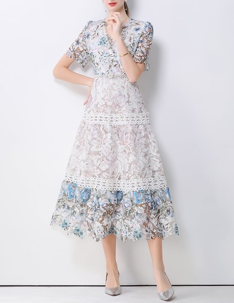 花柄のクロッシェレースワンピース