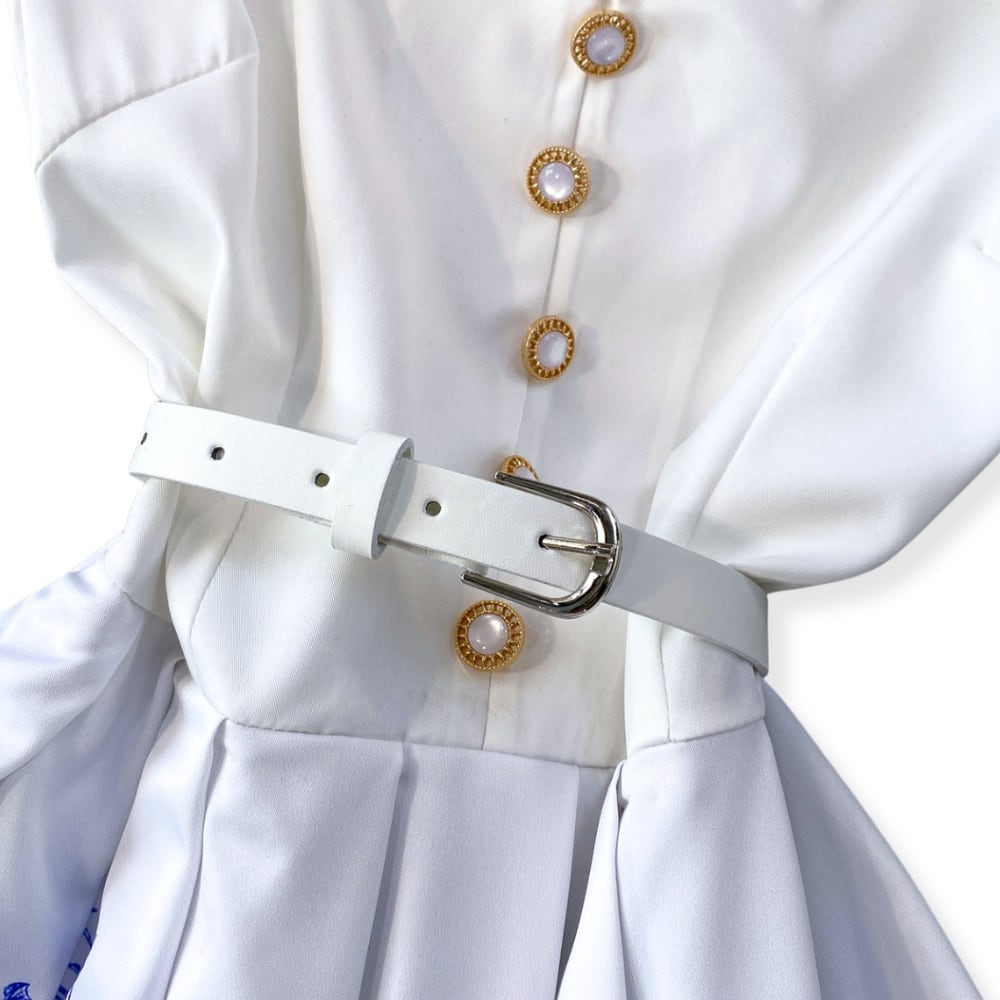 ホワイトのウエストベルトは取り外し可能