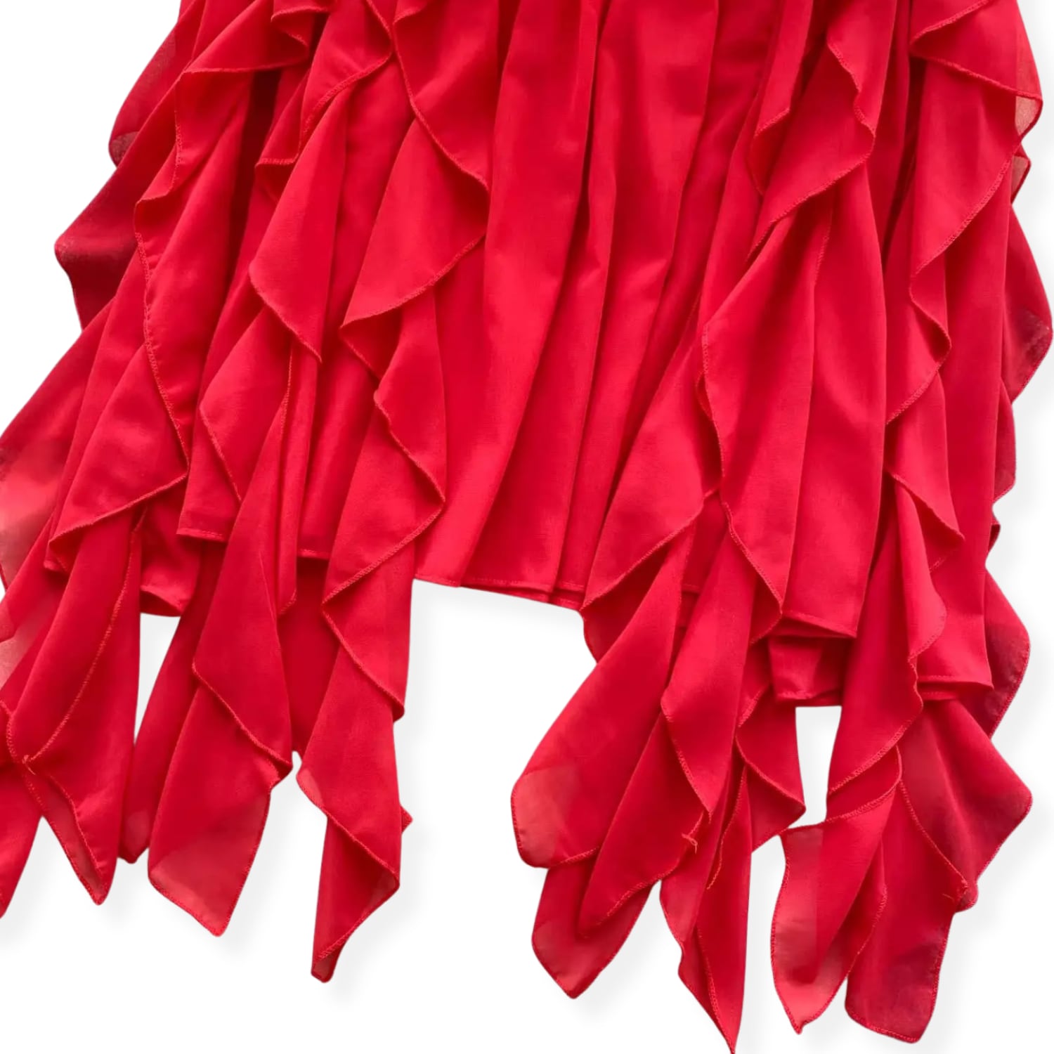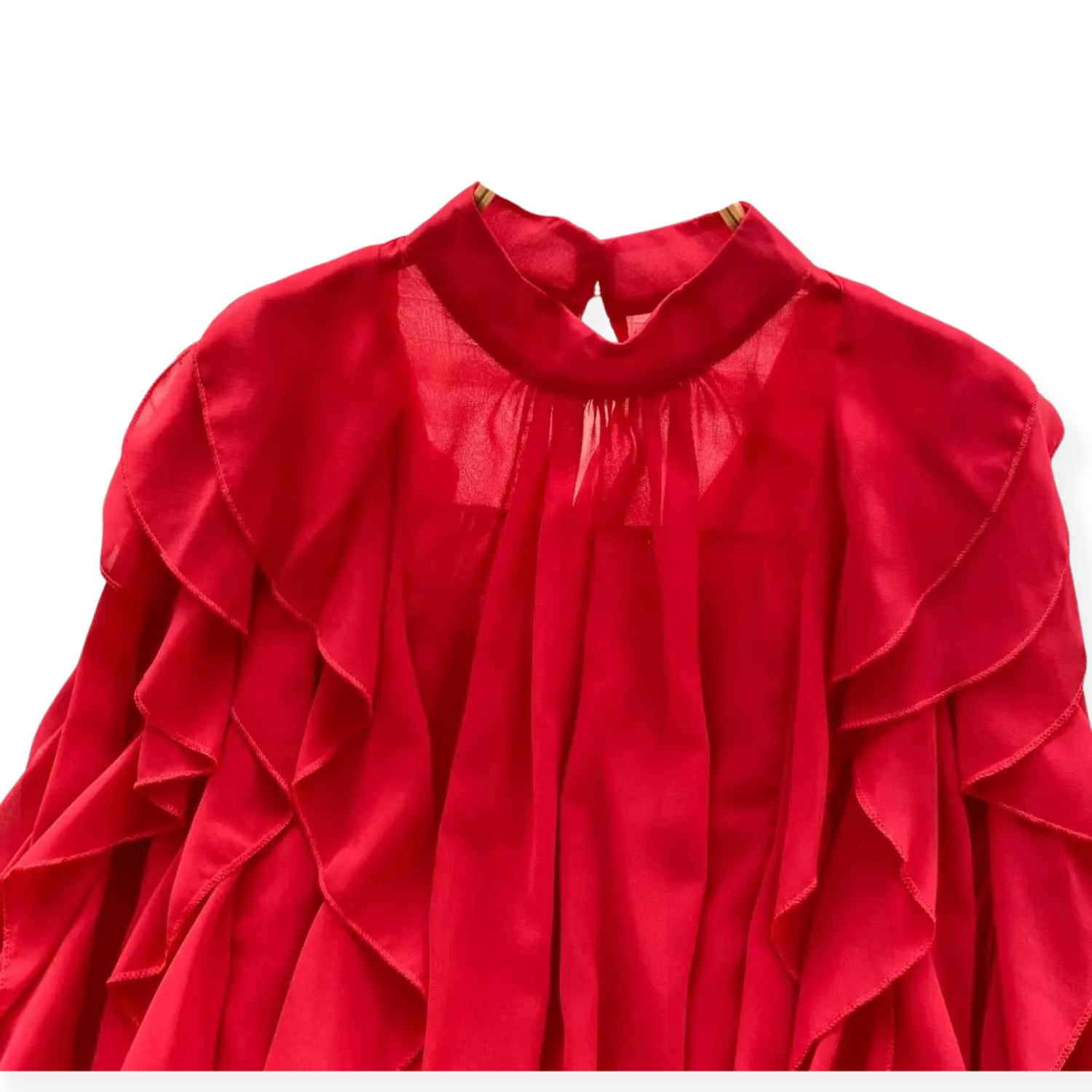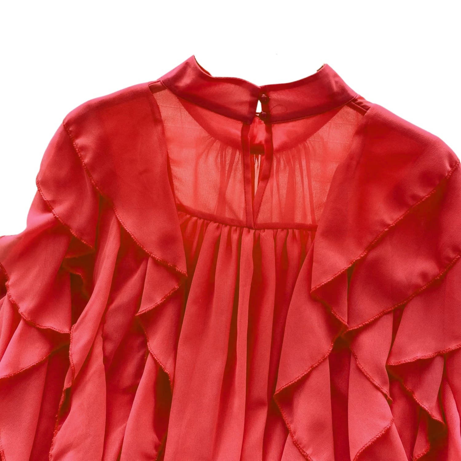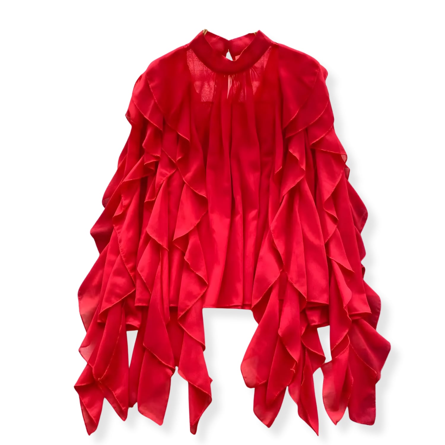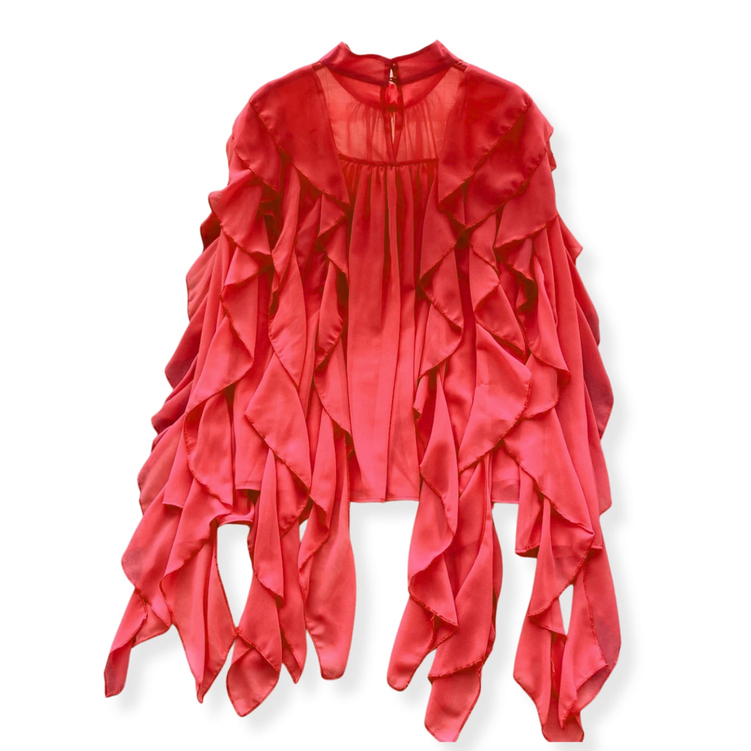 D2671 ラッフル フリル イレギュラーヘム ロング ドレスシャツ ブラウス 《 レッド 》 赤ブラウス フェアリー シャツ ドレスブラウス シャツ フリルブラウス 無地 ふわふわ インポートブラウス フリルブラウス 袖あり トップス 衣装 ラッフル ボリュームブラウス ロングブラウス ロングシャツ