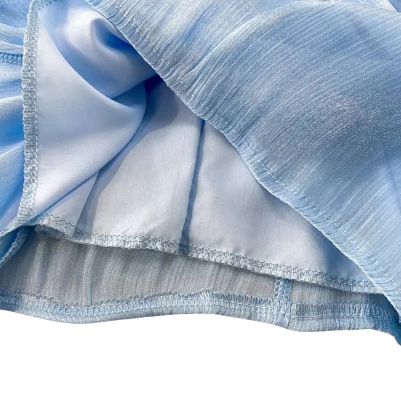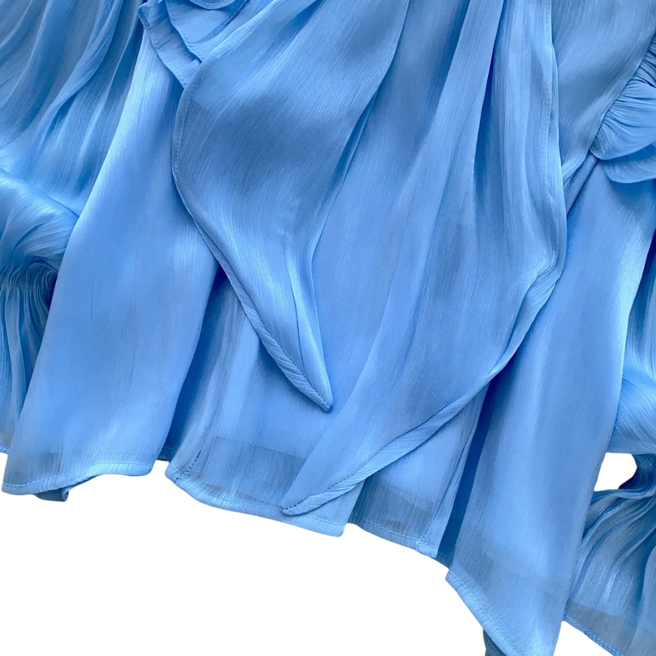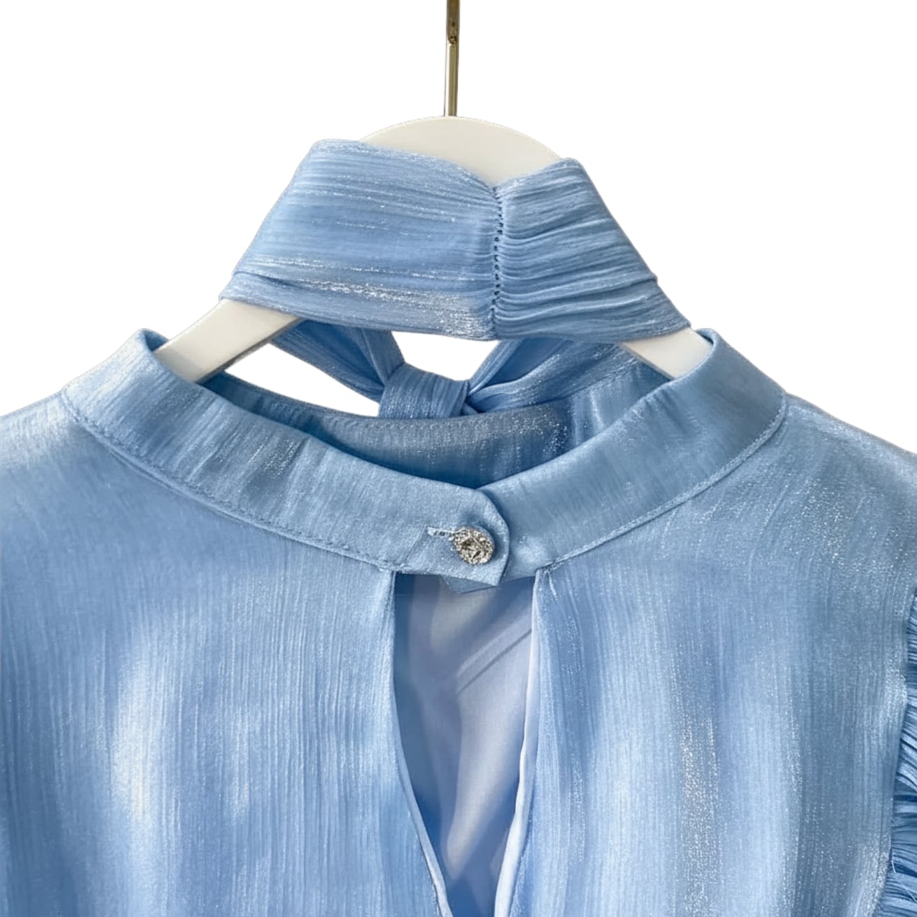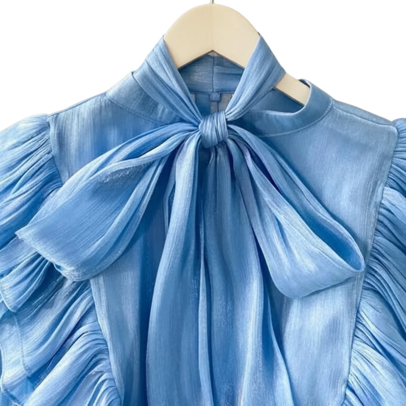 D2674 ボウタイ付き ラッフル フリル キャンディースリーブ シャイニー ドレスシャツ ブラウス 《 ライトブルー 》 水色 フェアリー 長袖 シャツ ドレスブラウス シャツ フリルブラウス 無地 ふわふわ インポートブラウス フリルブラウス 袖あり トップス 衣装 ラッフル ボリュームブラウス ロングブラウス ロングシャツ