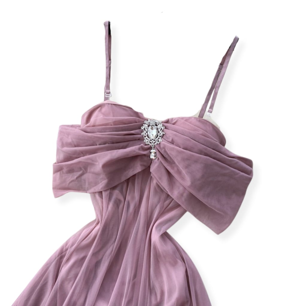 送料無料 ◆ D2675 ブローチ付き 2way チュールレース クラシカル ロング キャミ ドレス ワンピース《 ピンク 》ベアワンピース ローズピンク ワンピース 無地 無地ワンピース ピンクワンピ ロングワンピース エレガント レディ ロングワンピ クラシカル クラシック ヴィンテージ インポートワンピース お呼ばれ パーティードレス パーティーワンピ 袖付き お呼ばれワンピース ひざ丈 インポートワンピース お呼ばれ 衣装 結婚式 同窓会 発表会