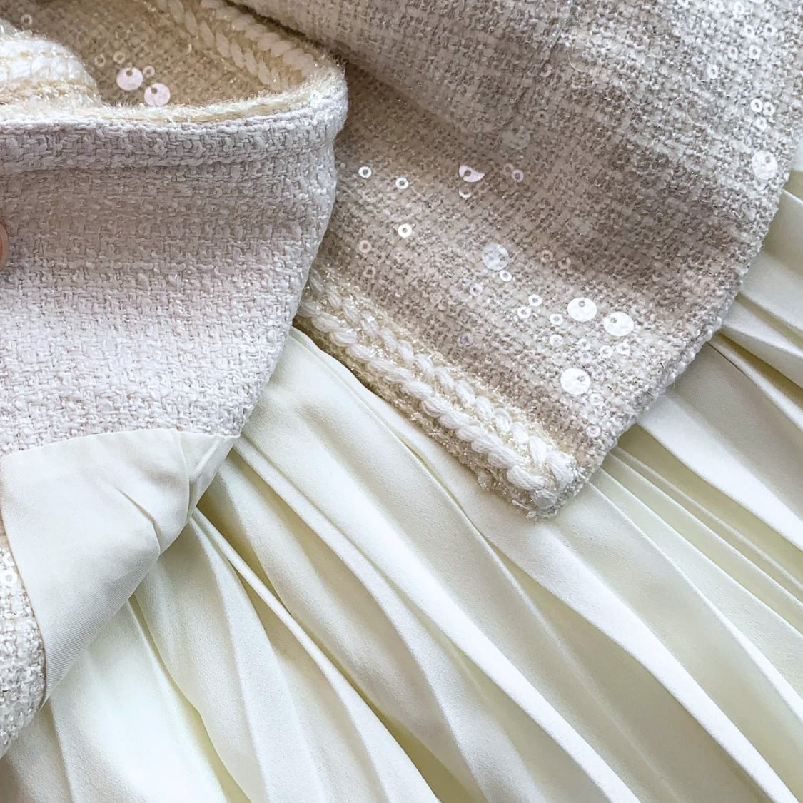 大小のクリアスパンコールが控えめに輝く華やかなサマーツイード