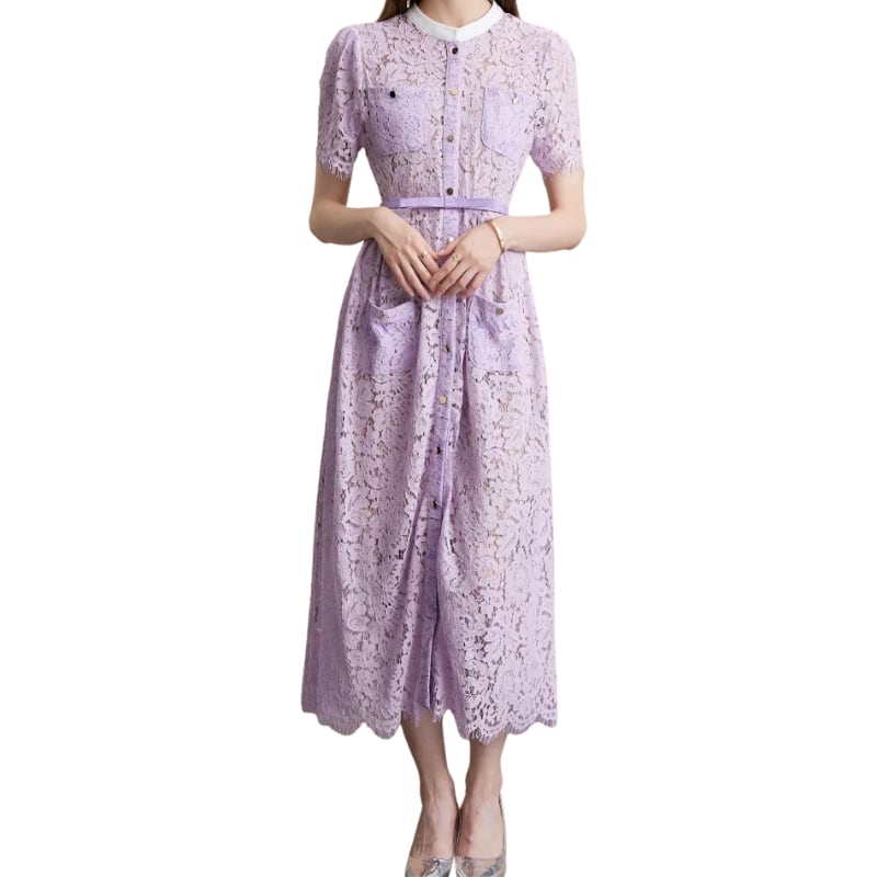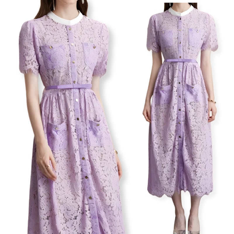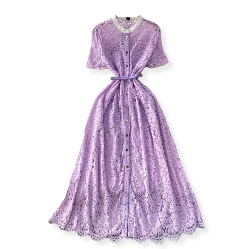 送料無料 ◆ D2699 ベルト付き ホワイトネック ゴールドボタン ハーフスリーブ レース ロング ドレス ワンピース《 パープル 》 フレアワンピース ワンピース 紫ドレス ラベンダー 無地 膝丈 ひざ下 インポートワンピース パーティードレス 結婚式 お呼ばれ お呼ばれドレス パーティーワンピ 袖付き お呼ばれワンピース ドレス 衣装 膝下 ドレス ワンピ インポートワンピース お呼ばれ デート 上品 衣装 エレガント お出かけ 発表会 同窓会 謝恩会
