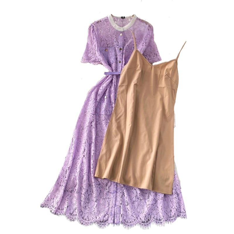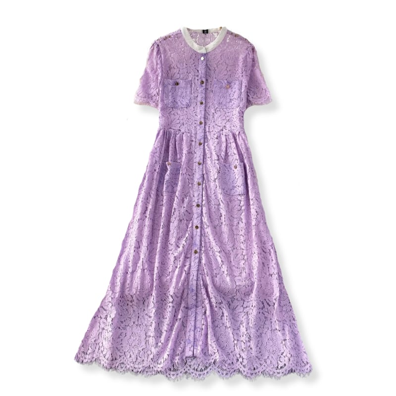 優しいパープルのレースドレスワンピース
