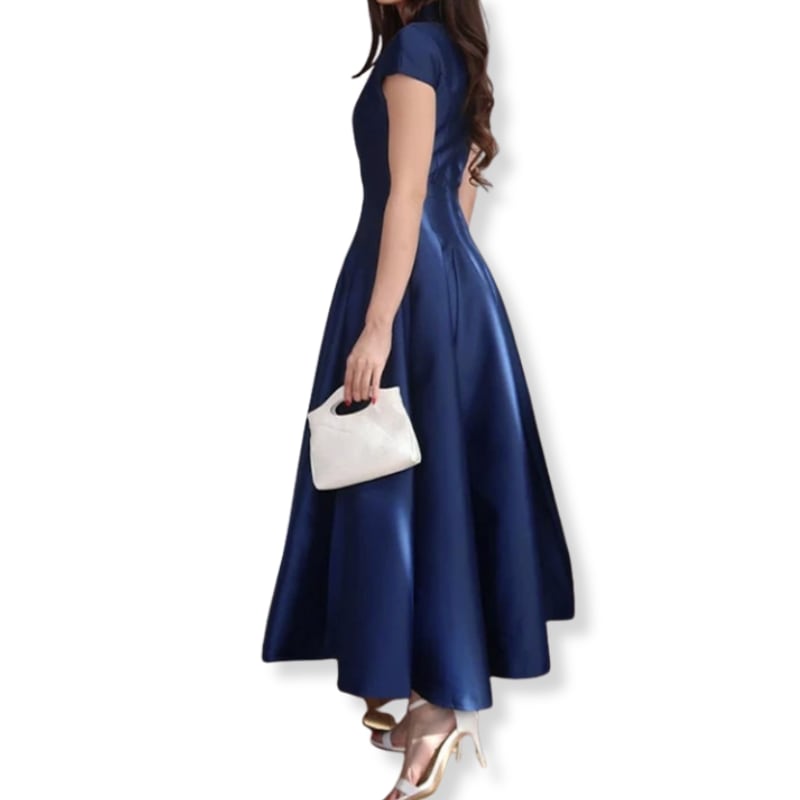 送料無料 ◆ D2702 Vネック フレンチスリーブ ロング フレア ドレス ワンピース《ネイビー 》 ネイビードレス ネイビーワンピース 青系 フレア 無地 ワンピース レース 膝丈 ロング インポートワンピース お呼ばれ 結婚式 パーティードレス メール便 パーティーワンピ 袖付き お呼ばれワンピース セミフォーマル ひざ丈 長袖 裏地付き 透けない インポートワンピース お呼ばれ ウェディング 上品 フォーマル セミフォーマル 結婚式 謝恩会 同窓会 発表会